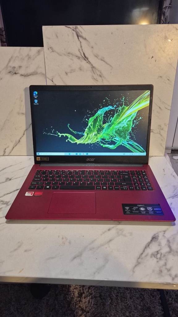 The Acer Aspire 3 Notebook (Model: N19H1) in red features AMD A9-9420E Radeon R5 processor, 4GB RAM, and a 15.6-inch screen with a maximum resolution of 1920 x 1080. With integrated graphics and 930GB HDD capacity, this laptop runs on Windows 10 and offers HDMI connectivity for seamless integration with different devices.