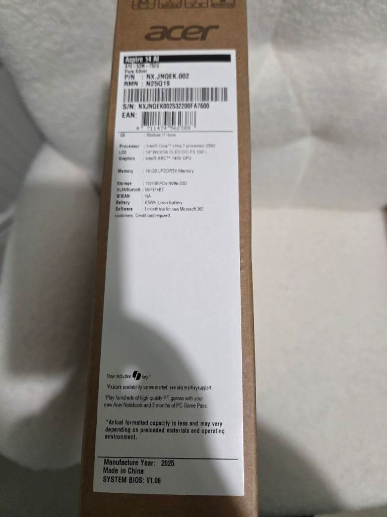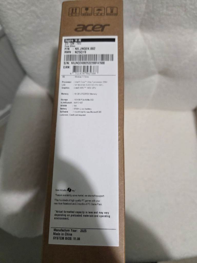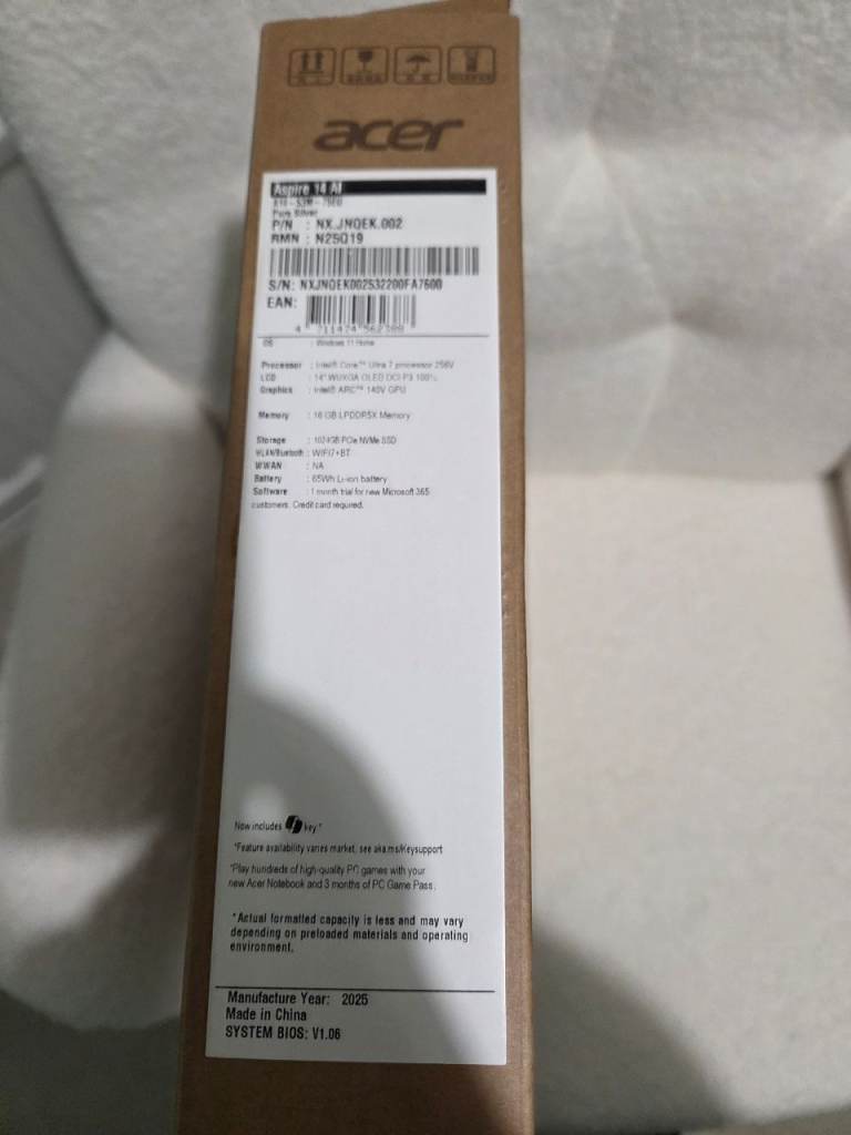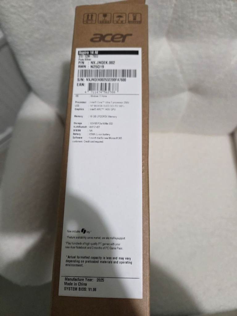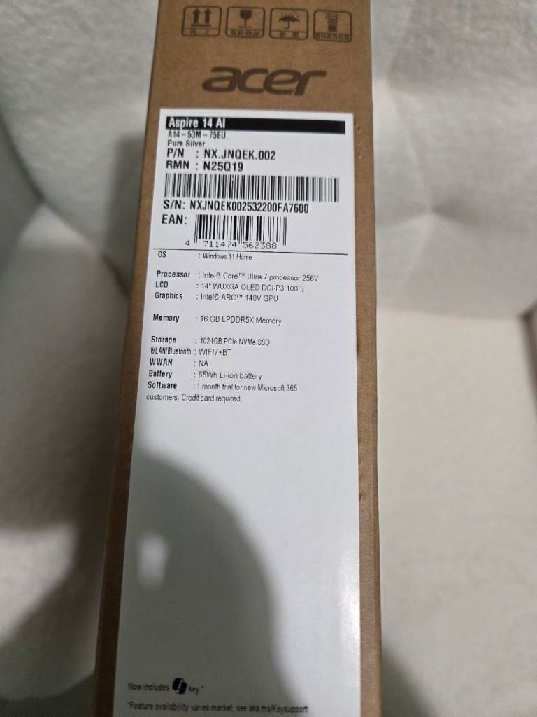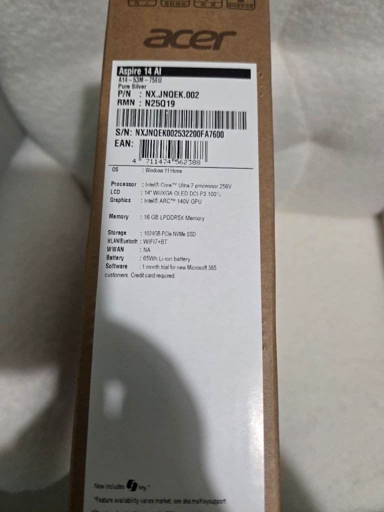 Its a ACER Aspire 14 AI OLED 14" Laptop, Copilot+ PC - Intel® Core™ Ultra 7, 1 TB SSD, Silver