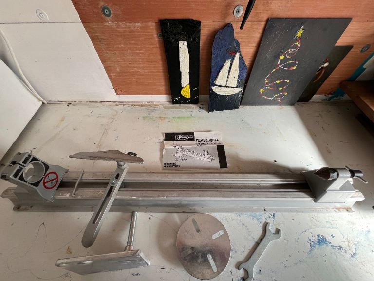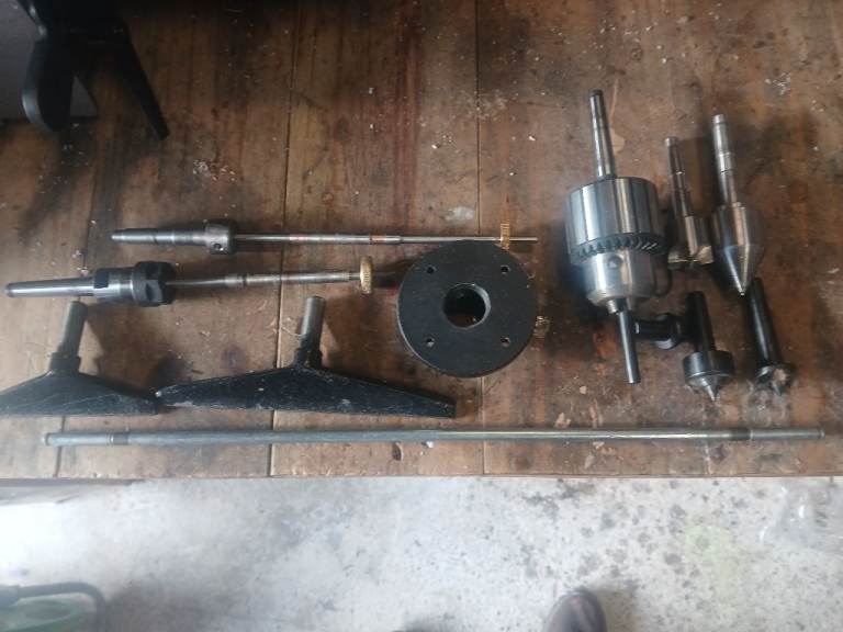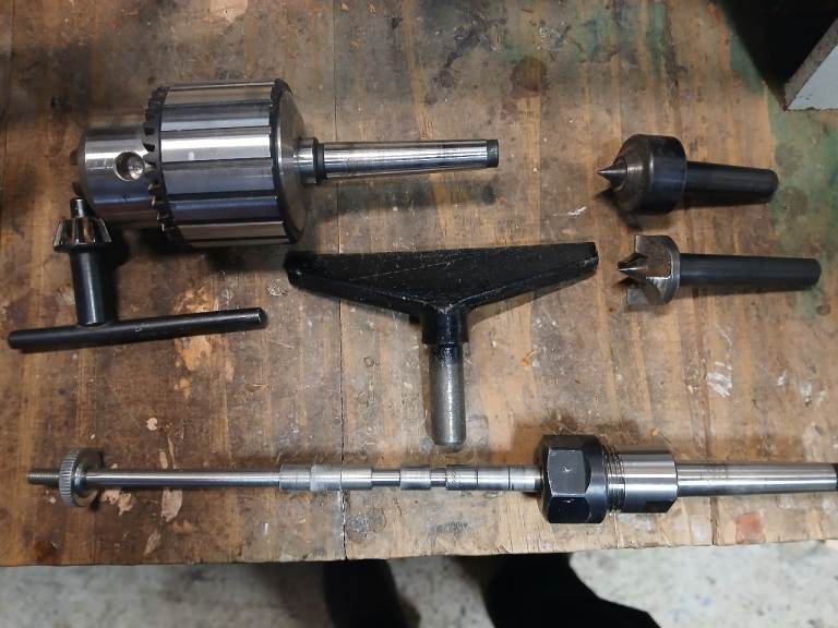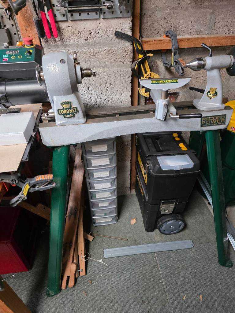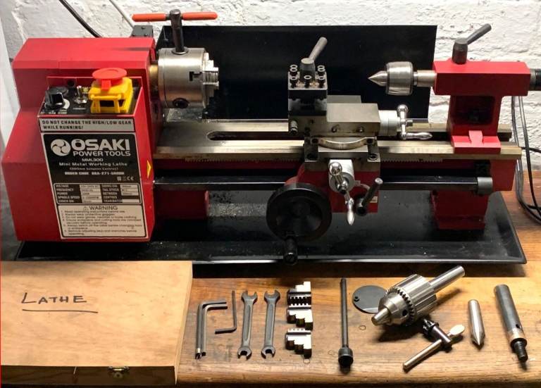 Ready to use with 2 tool rests, 2 drive spindles, 2 tailstock centres, drill chuck, face plate, 2 pen making mandrels push rod. All you need are the chisels.