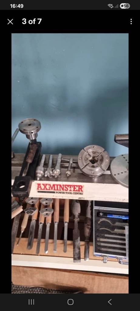 Axminster wood lathe in excellent condition, comes with all youll ever need to start out, there's over 2 thousand pounds of stuff here altogether, runs off a normal household plug, selling due to my son moving in with me and I need the room