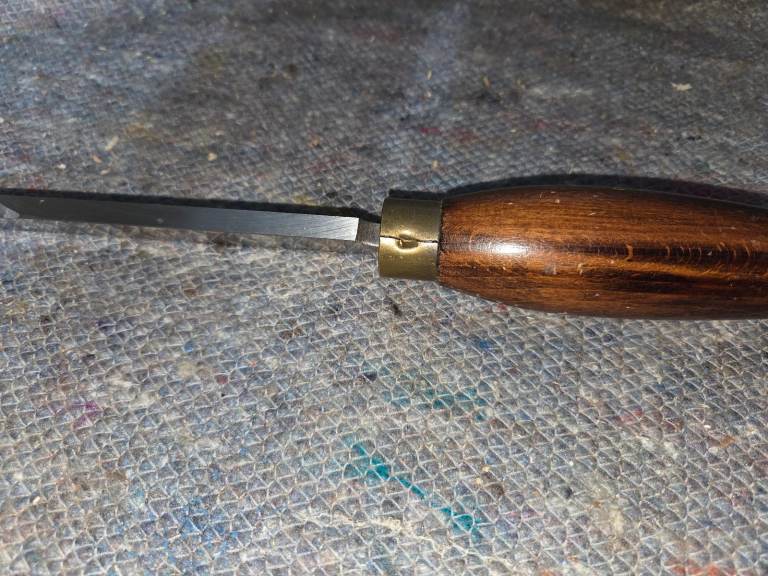 Has a cracked ferrule and end has been ground so it is not full half round . See photos