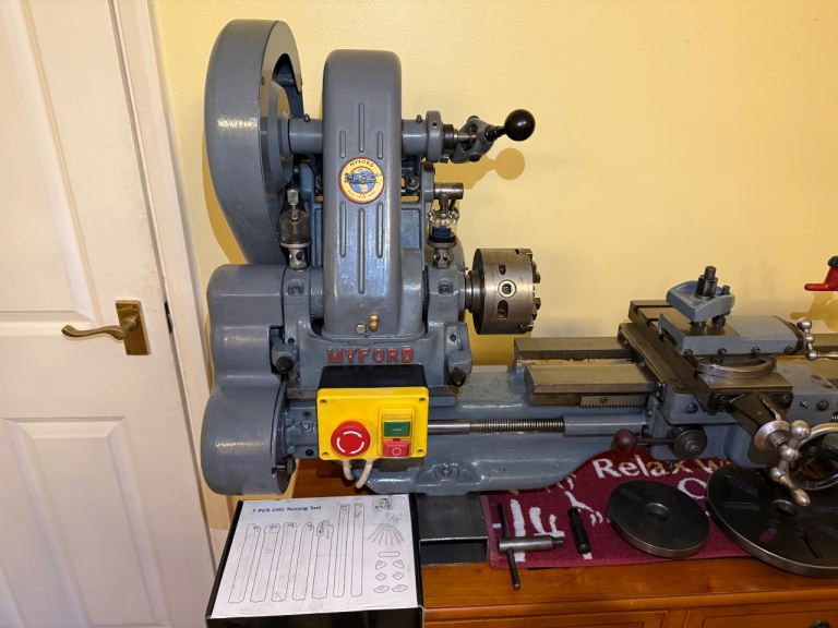 This lathe is a fully working MYFORD ML7 running on 240v, with modern standard start and stop buttons, safety kill switch installed/emergency stop.