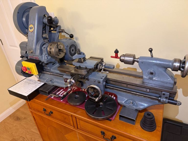Fully restored and painted, comes with chuck key for main chuck, tooling, faceplate, full set of gears, drill chuck with chuck key.