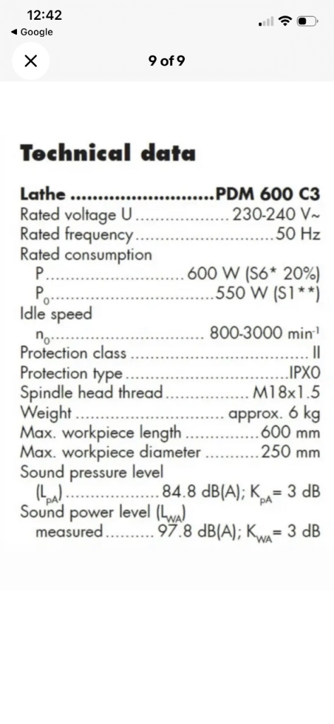 Parkside Wood Turning Lathe German Brand