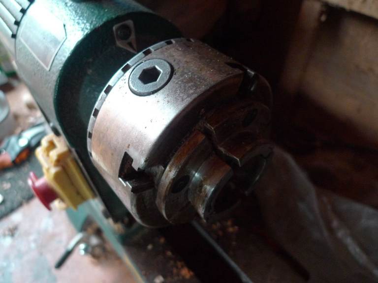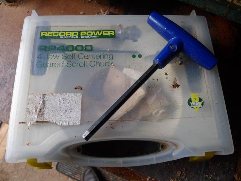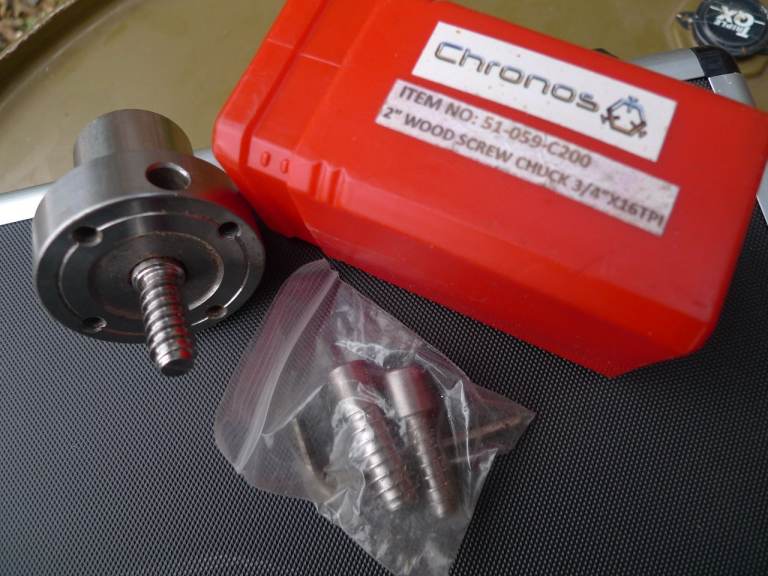 Lathe with rp4000 scroll chuck ( no wood screw ), shark jaws, Chronos wood screw and clb attachment.