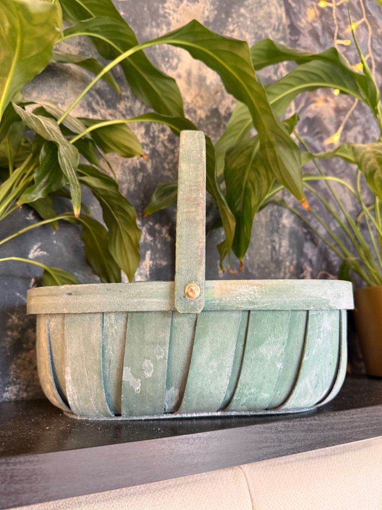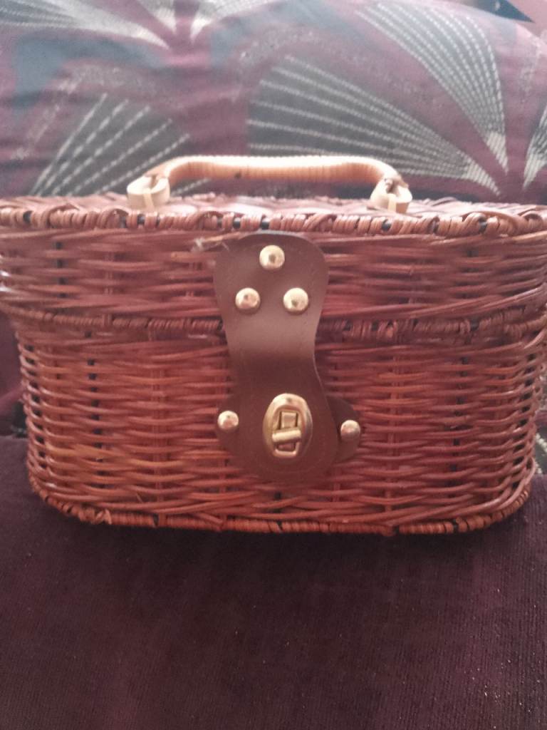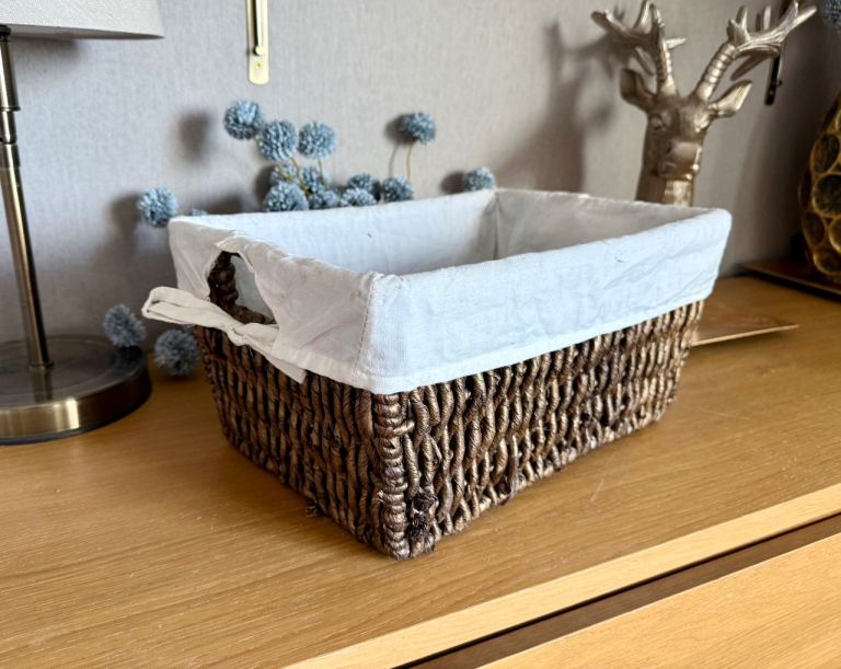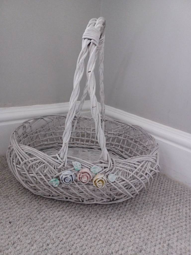 Pretty basket in off white with decorative flowers on the front.