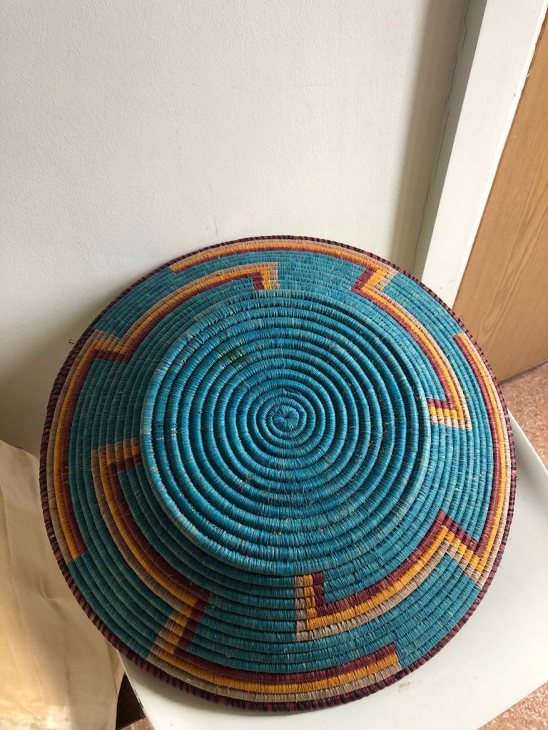 Colourful African style basket, in great condition condition, lovely fruits container or many other uses . 40 cm diameter
