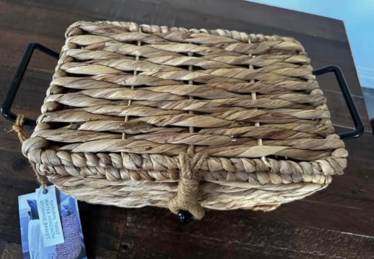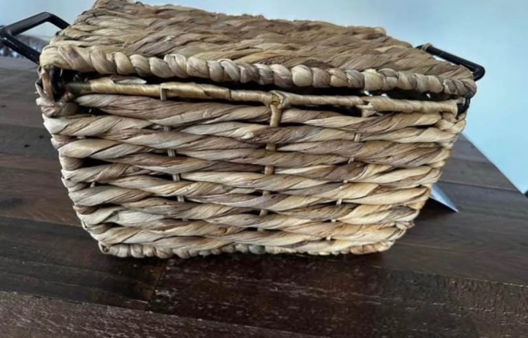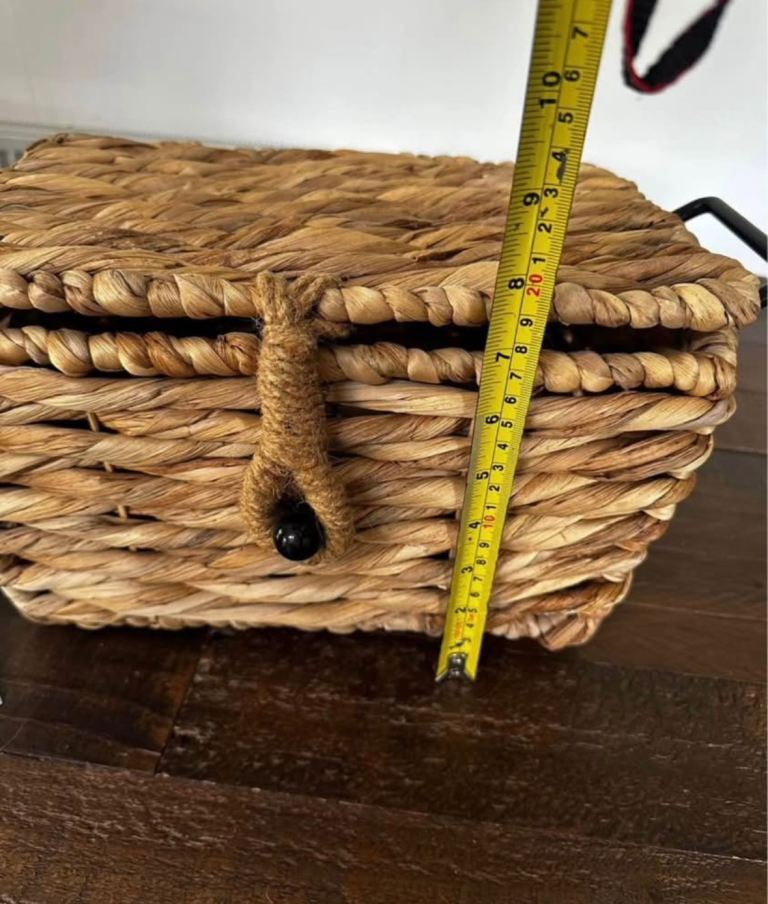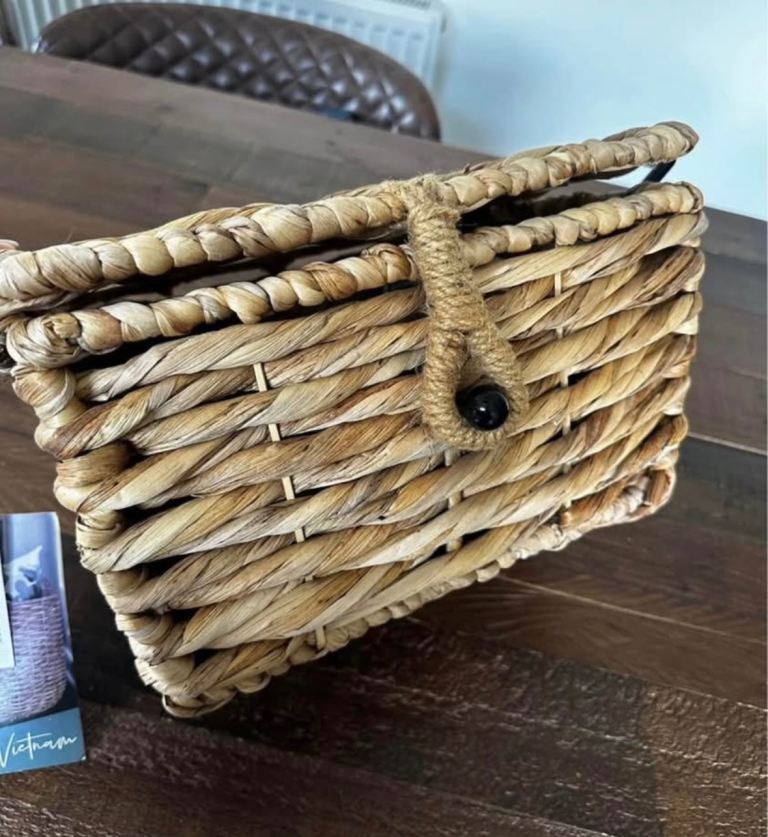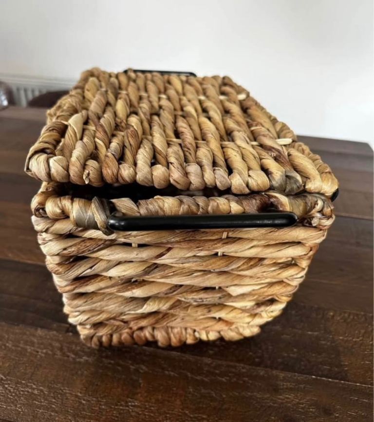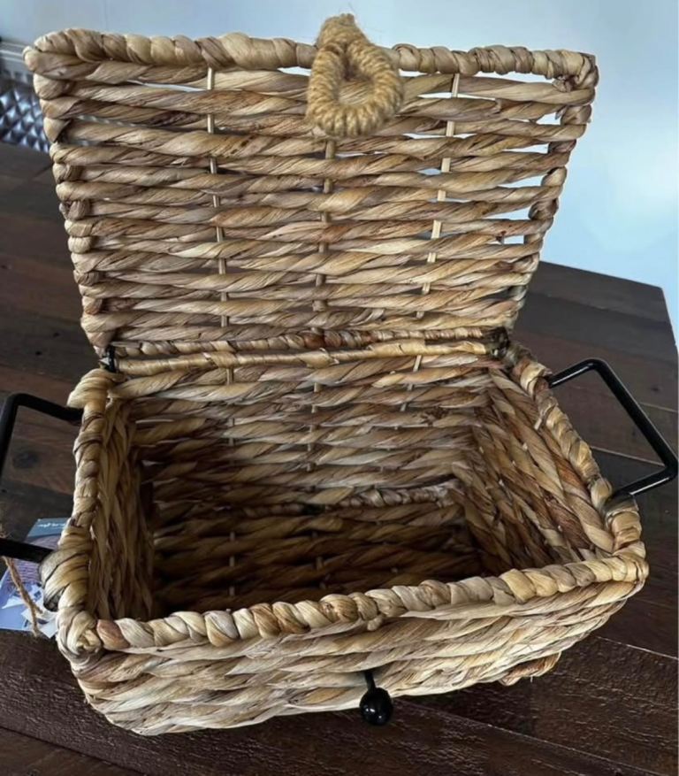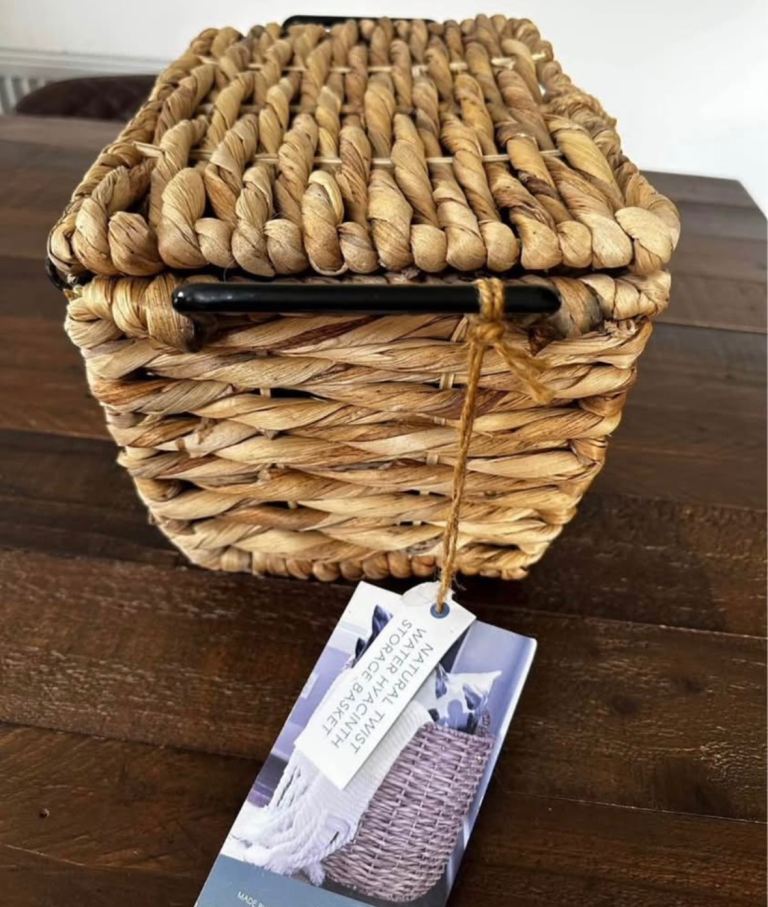 Handmade Water Hyacinth Storage Basket with Lid and Handles New with Tags 30cm x19cm x20cm