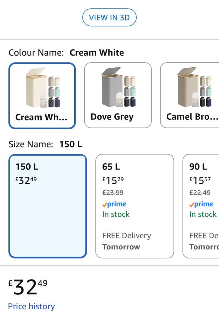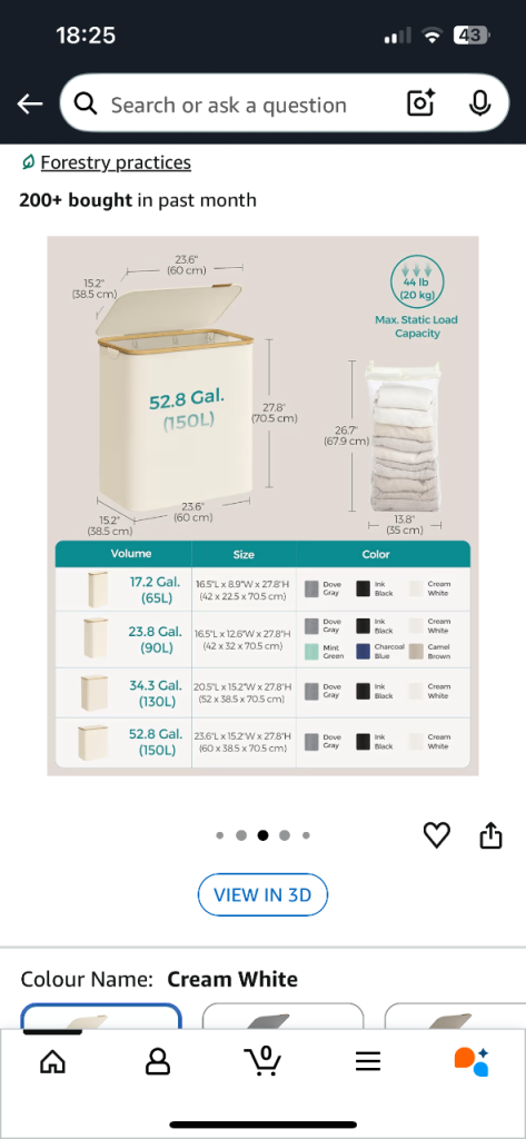 150l laundry basket. Photo doesn’t capture how big it is. RRP £32.50