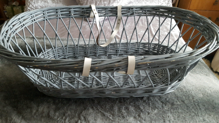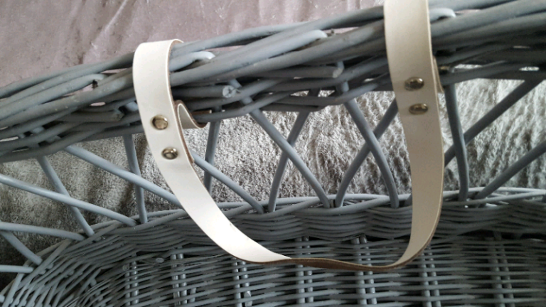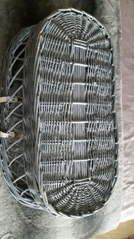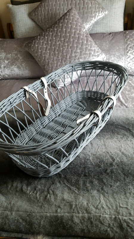 Large GREY Wicker Basket with White Handles Baby Cot