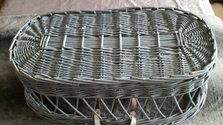 Large GREY Wicker Cote Basket with White Handles Baby Cot