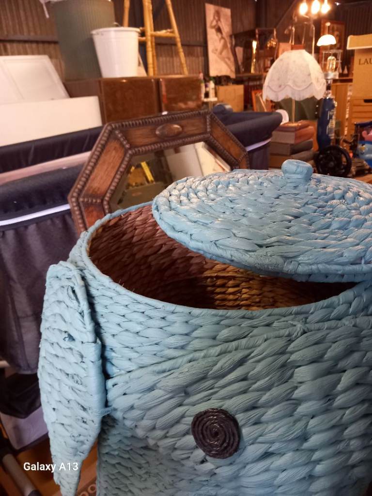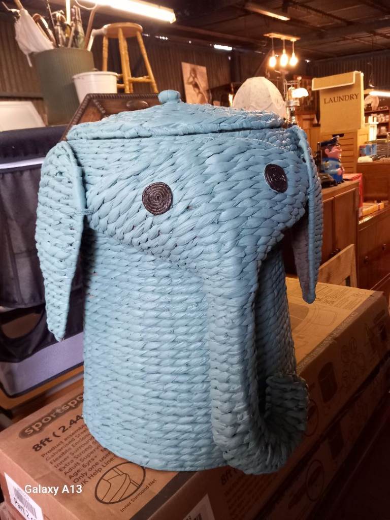 Kiddies elephant laundry basket with lid , , 17" diameter X 22" tall.