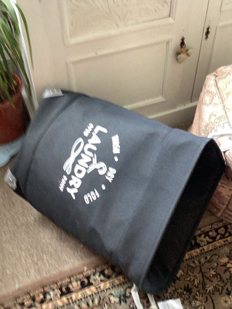 New with Aldi label on it 22” high laundry stand up black canvas bag. Westbourne. Could deliver