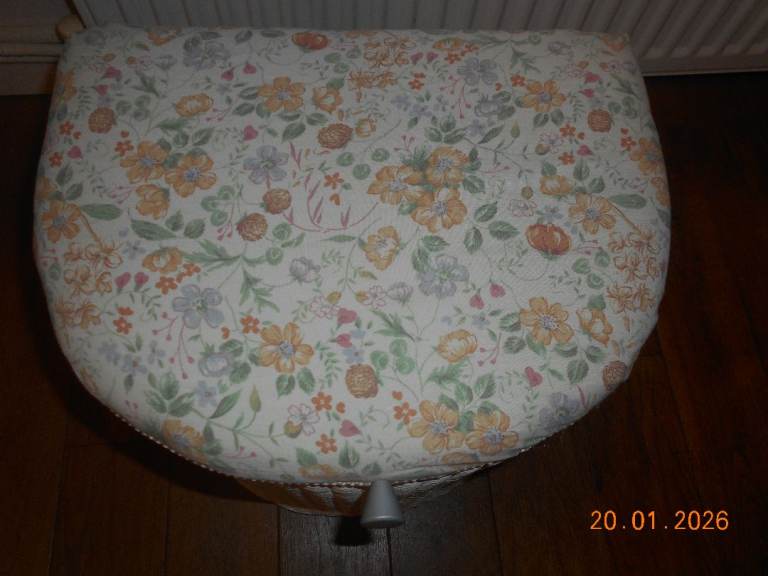 THE LID HAS BEEN RE-COVERED IN A QUALITY PALE FLORAL FABRIC