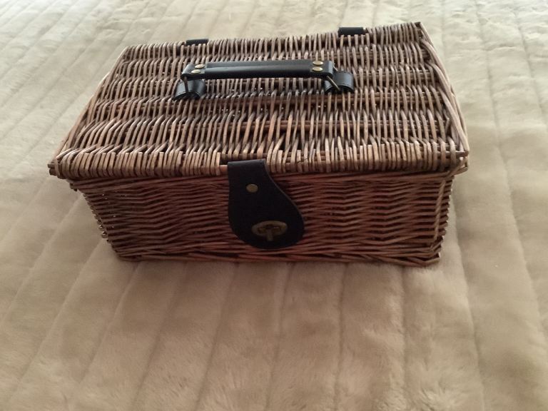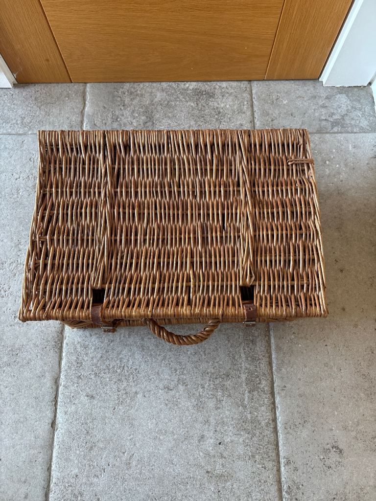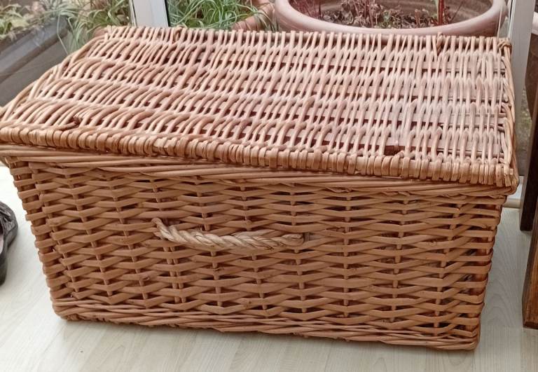 This oval wicker shopping basket is in excellent condition. It was used for one school term for transporting items for cookery lessons! It measures 40cm long x 32 cm wide x 20cm height. Collection from Leeds.