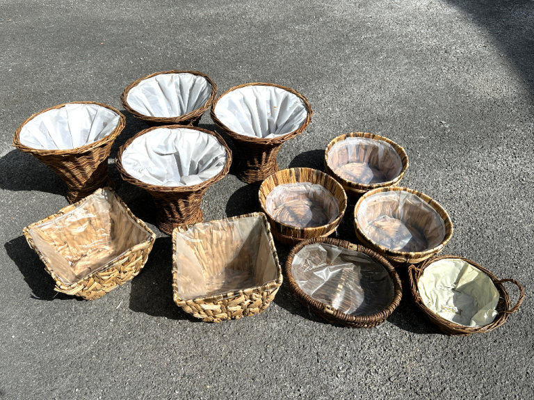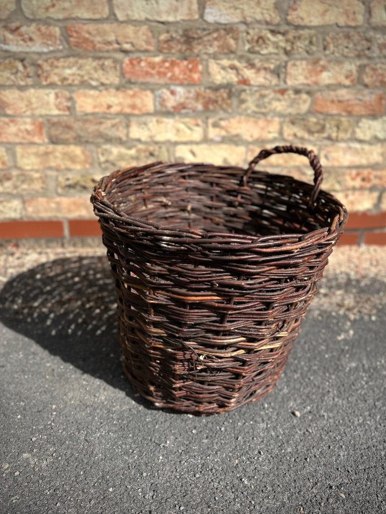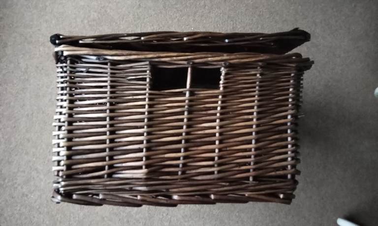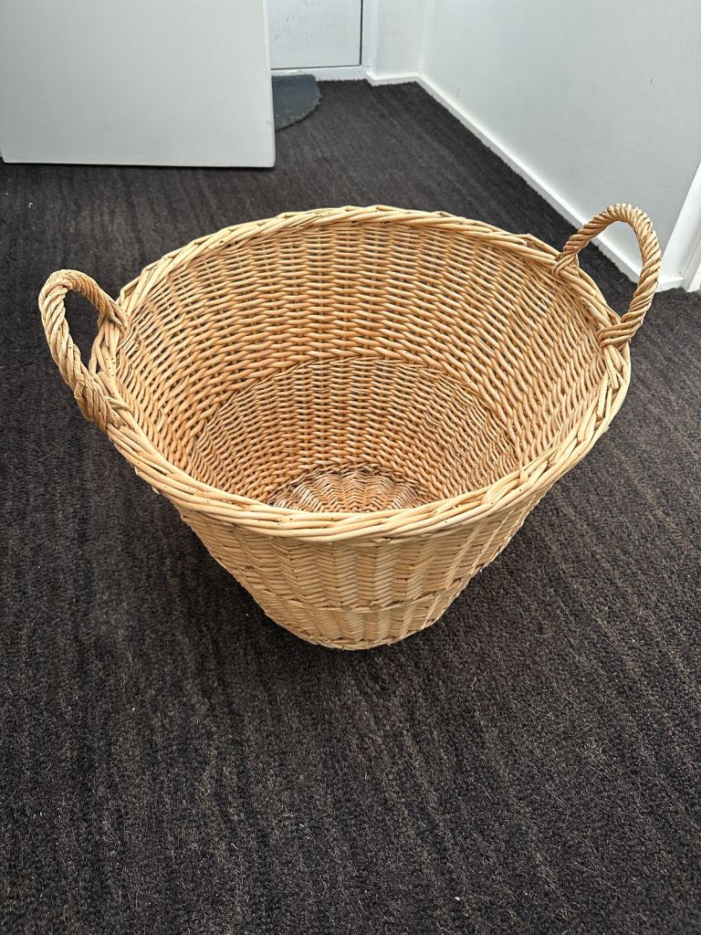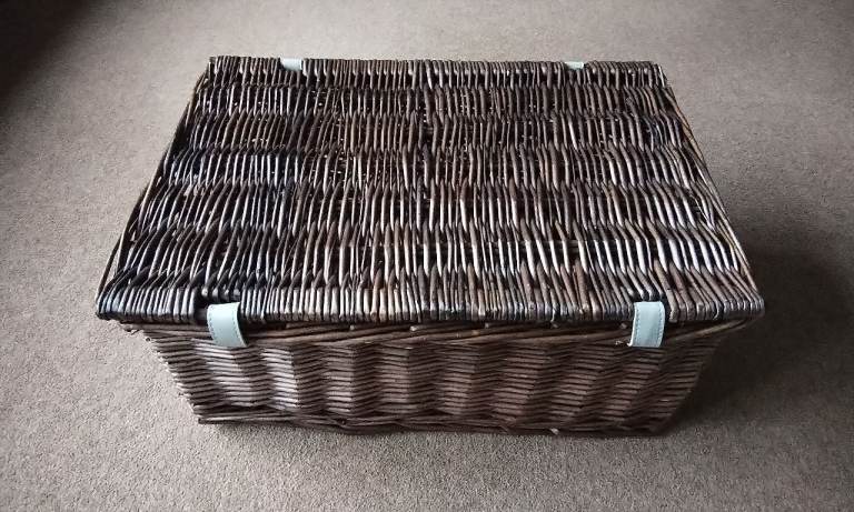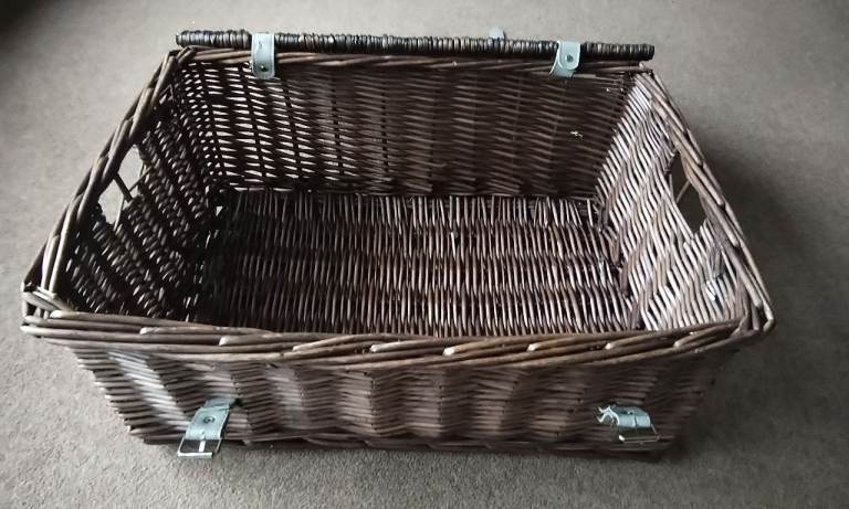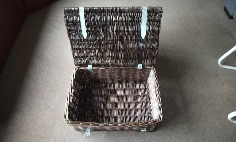 A wicker basket which could be used for storage or could be fitted out as a picnic hamper.