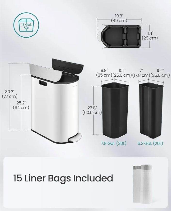 A new atill boxed whire metal Double Kitchen Bin, 30L and 20L Dual Compartment Slim Bin for Recycling and Waste, Pedal Bin with Wing Lids, Cloud White x silver the full measurements are enclosed in the pictures the r.r.p is 91.65 we are selling it for 50.00 collection only it is st aidens Church summer Bank Road Tunstall st6 5ey we are there mon to sat 9am to 3pm with thanks.
