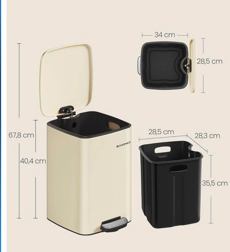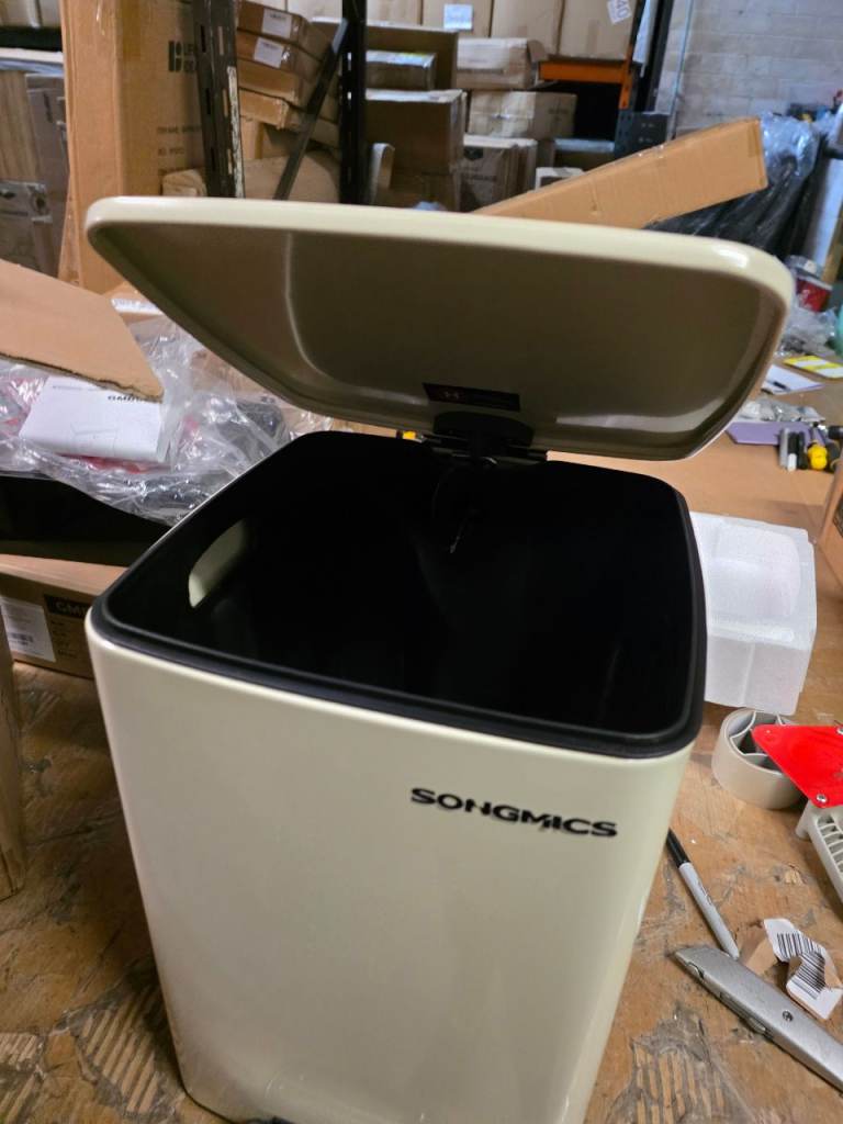 A new very slight seconds cream metal 20L Kitchen Bin with Inner Bucket, Soft Close and Hold Open, Steel Pedal Bin, it has a removable inner bin Sand Beige the measurements are enclosed in the pictures the r.r.p is 39.99 we are selling it for 15 00 collection only it is st aidens Church summer Bank Road Tunstall st6 5ey we are there mon to sat 9am to 3pm with thanks.