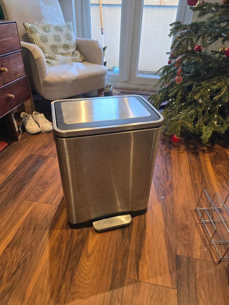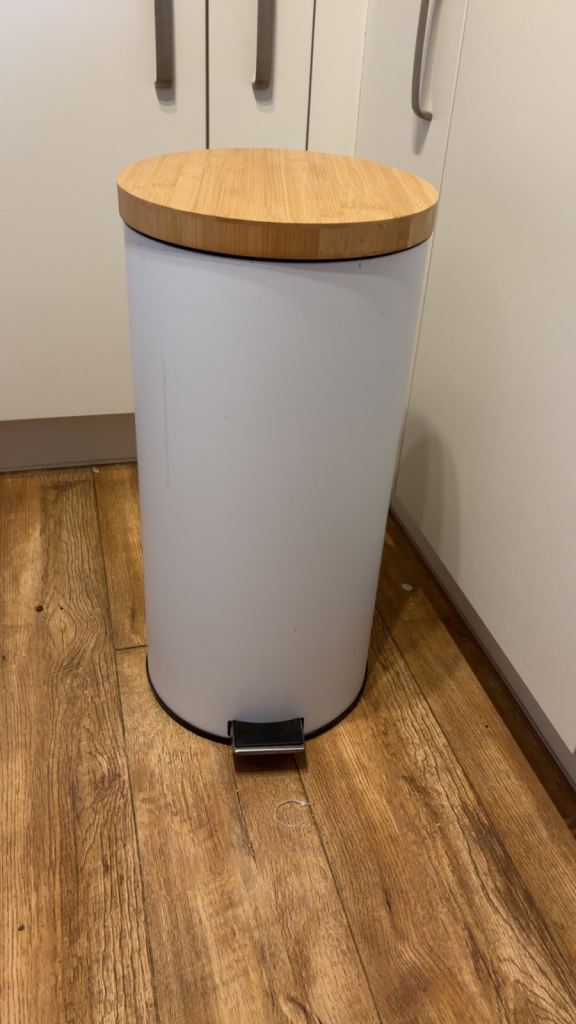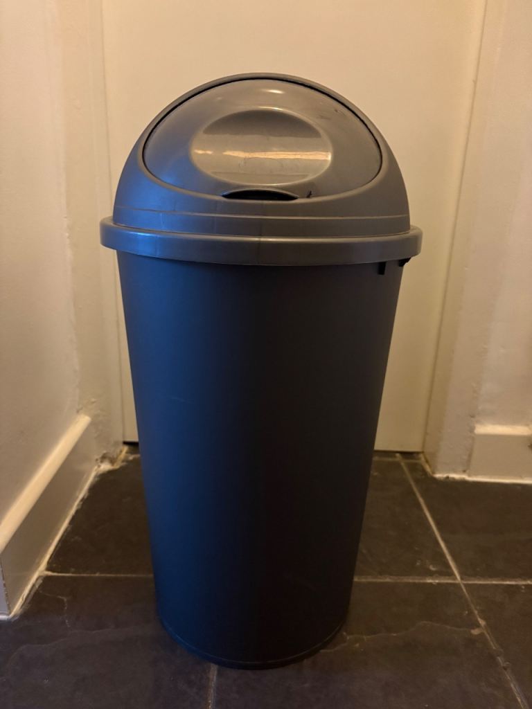 Three surplus household waste bins including a bathroom pedal one in very good condition