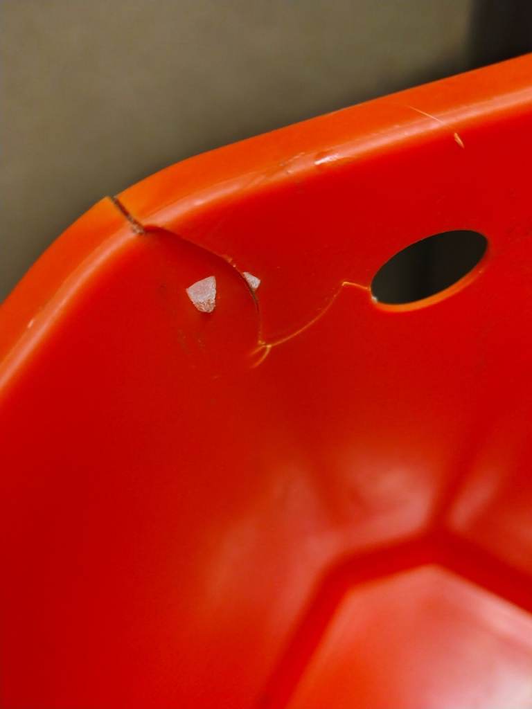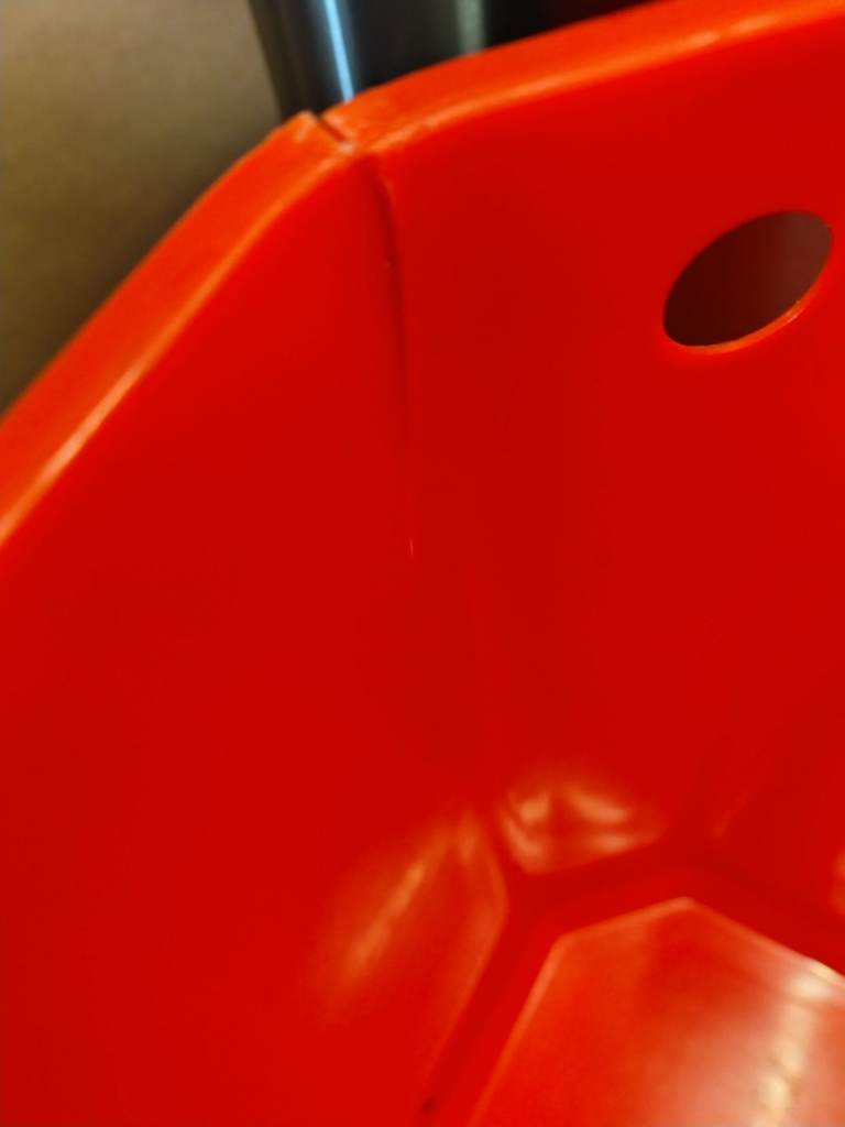 Lid needs lifted manually and both plastic internal containers have a crack in the corner. Still full useable as a bin.
