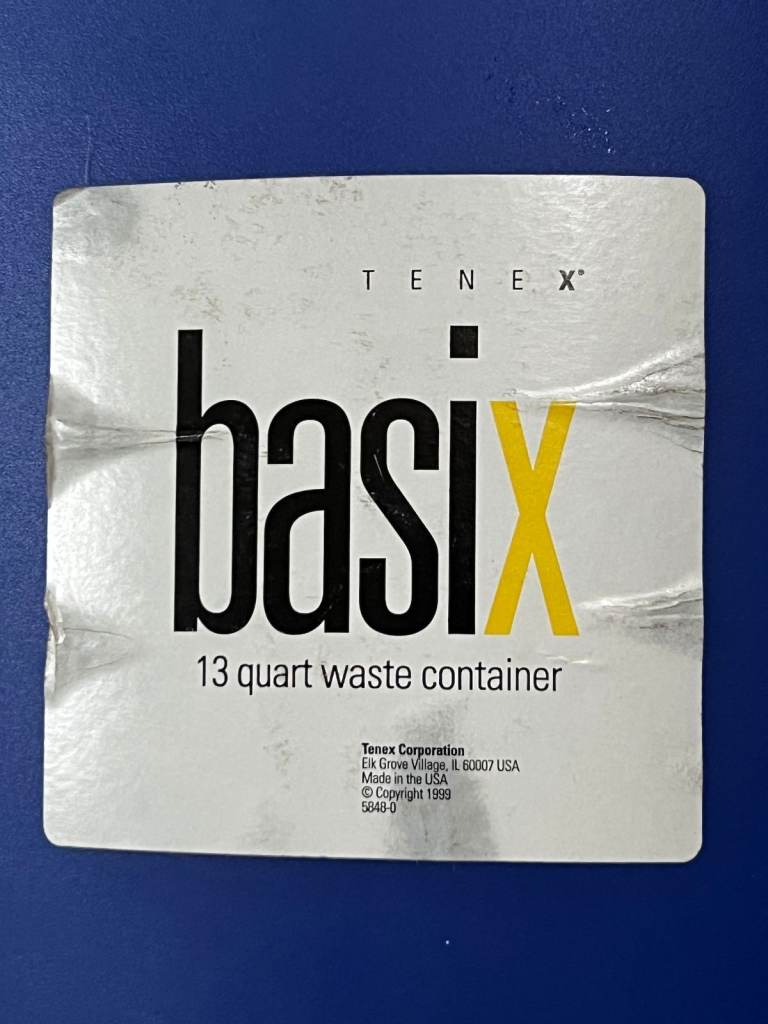 Tenex Basix 13 quart blue plastic paper waste bin , made in USA.
