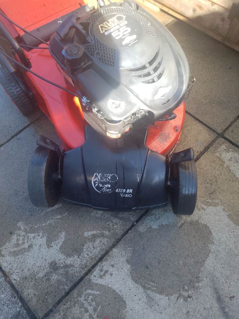 AL-KO self propelled petrol lawnmower with front steering left/ right turning.