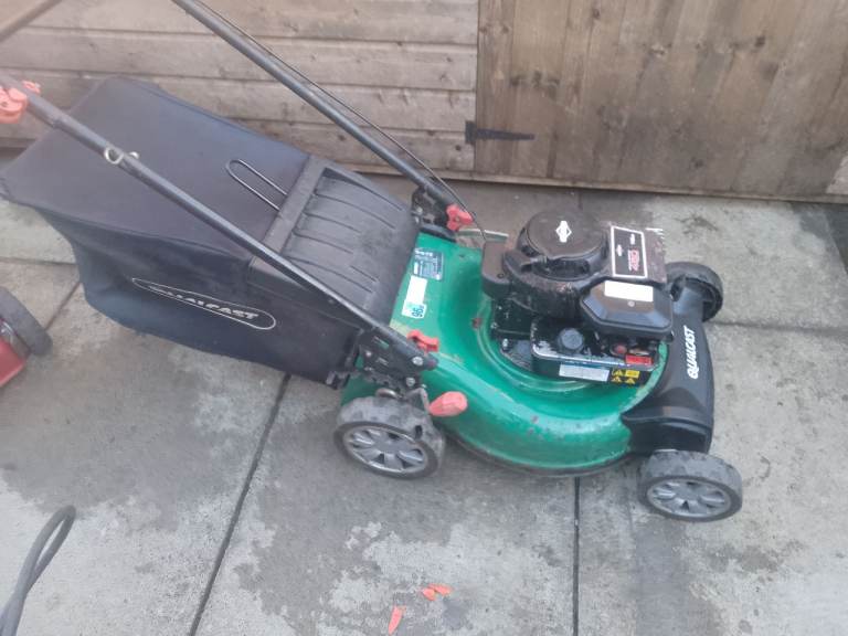Qulcast hand propelled petrol lawnmower with Briggs & Stratton engine..