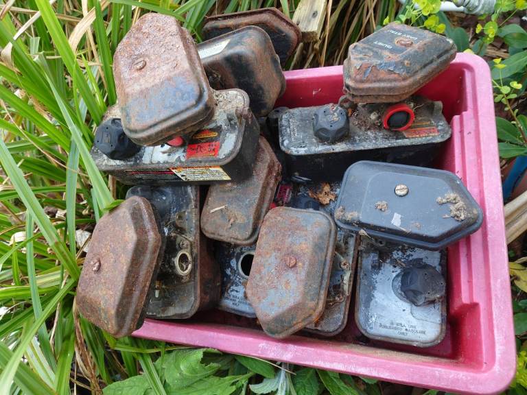 7 Lawn mowers spares or repairs, 3x Honda engines, rotavator, scarifier, boxes bags blades etc