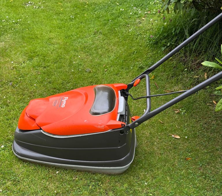 Very easy to handle and manoeuvre, the mower hovers effortlessly and there is also a front roller guide for added assistance