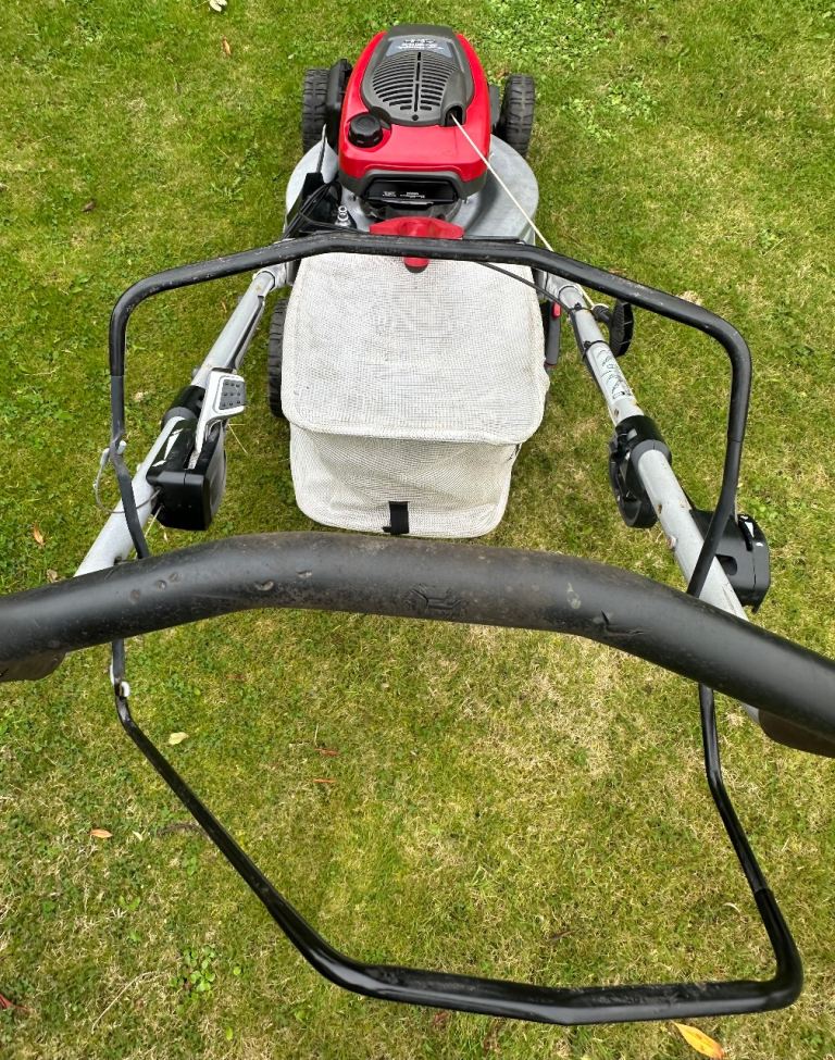 Mower comes complete with a large capacity push on grass collection bag & unused rear discharge chute