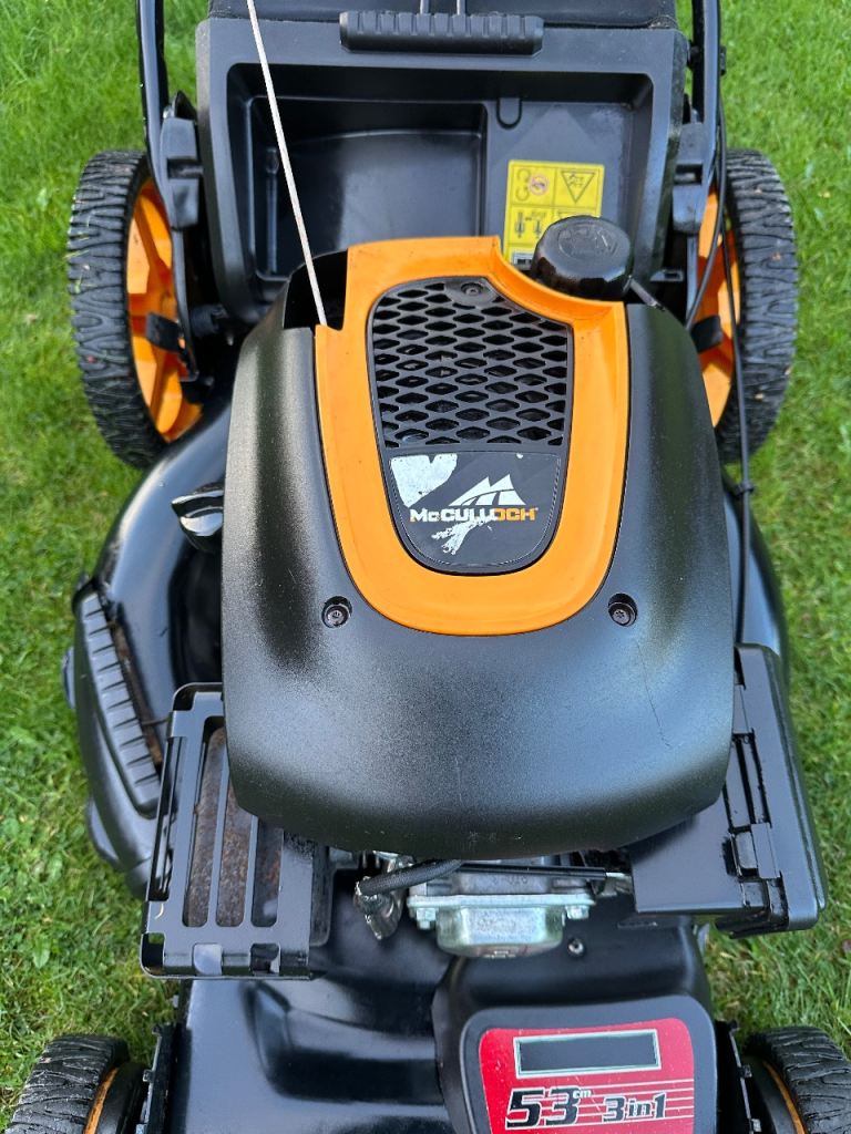 McCulloch 21” cut petrol 2 in 1 lawnmower. Fully serviced, blade sharpened & balanced. Carburettor cleaned and new pull cord fitted. Mower is in excellent condition and starts easily