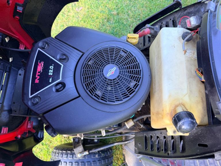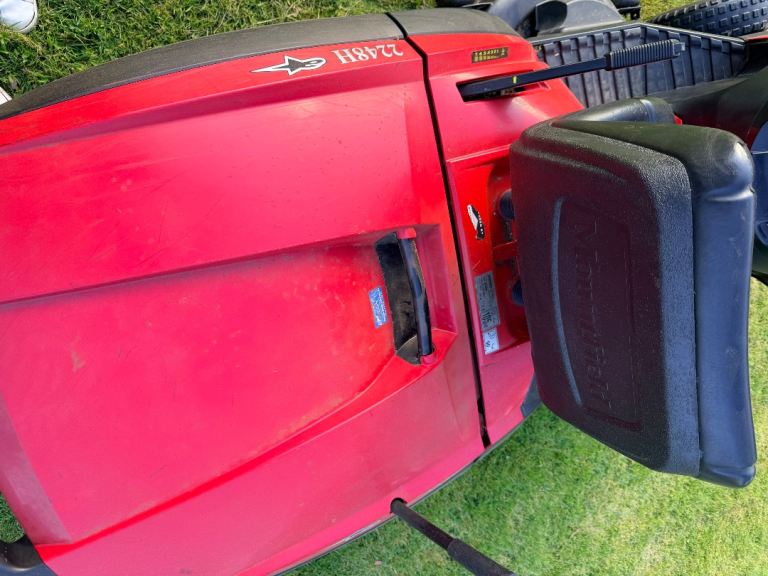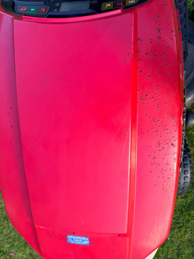 All belts replaced in the last 2 years, replaced cutting deck 5 years ago. Superficial pit marks on the engine cover and grass collector, see photos. Runs well, serviced in 2024. Not perfect, but runs well.