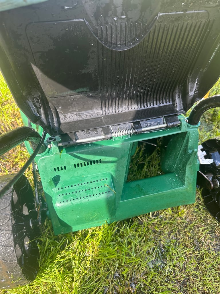 A 16”cutting width suitable for medium/small gardens. Nb. there is no grass collection bag with the mower but can still be used without for rough cutting or mulching