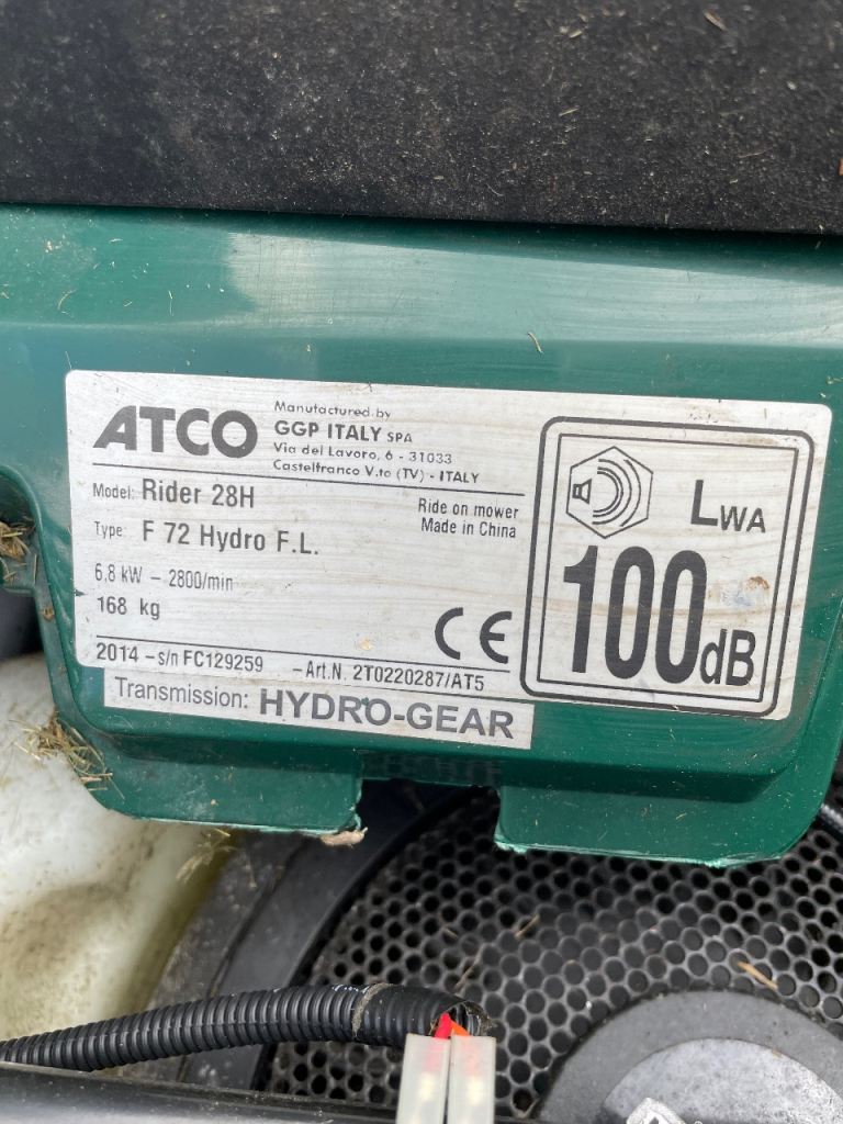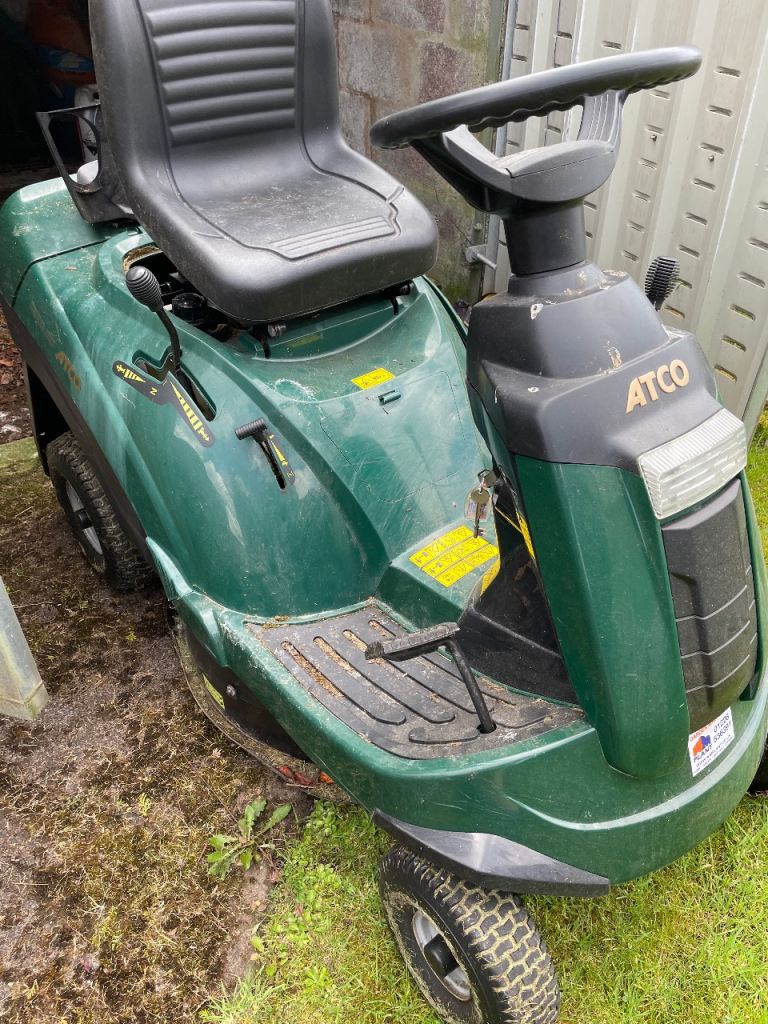 Atco rider 28h ride on mower, starts every time, runs and cuts, complete with collection box, could do with a service, can be seen working