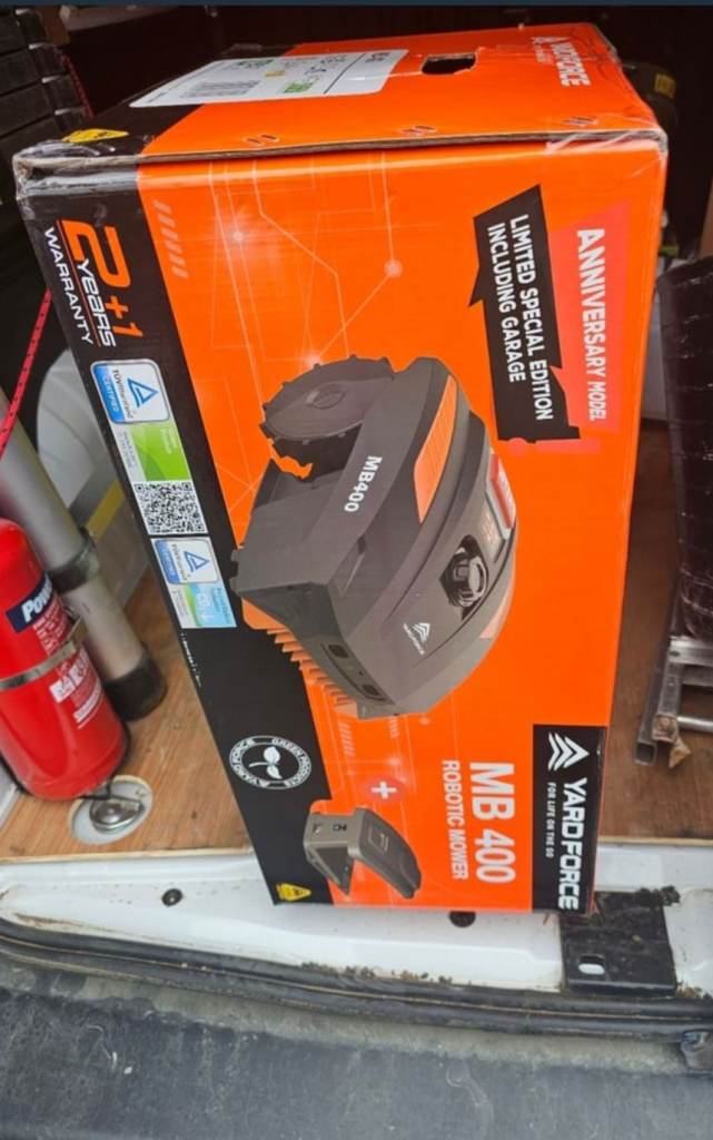 Get ready for grass cutting season or ideal gift brand new robot mower never been out the box also works with an app on your phone massive saving time and money only £300