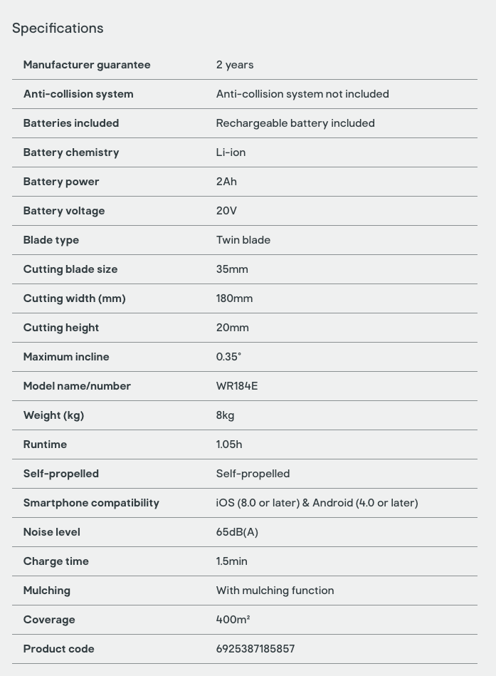 Worx Landroid WR184E 400m2 Cordless Robotic lawnmower
