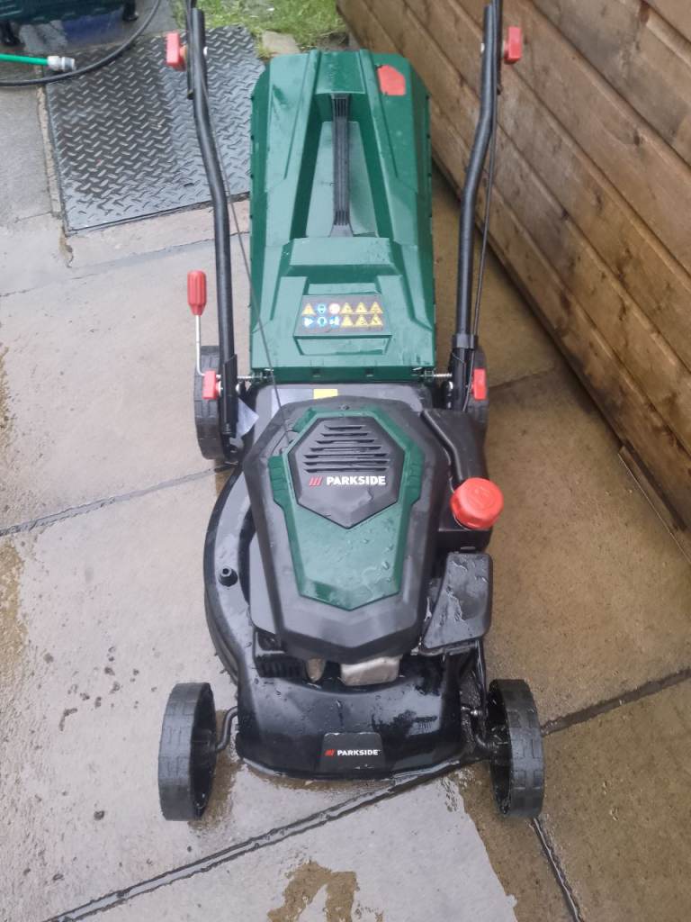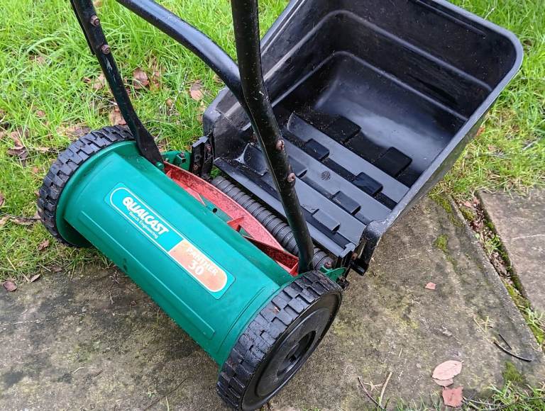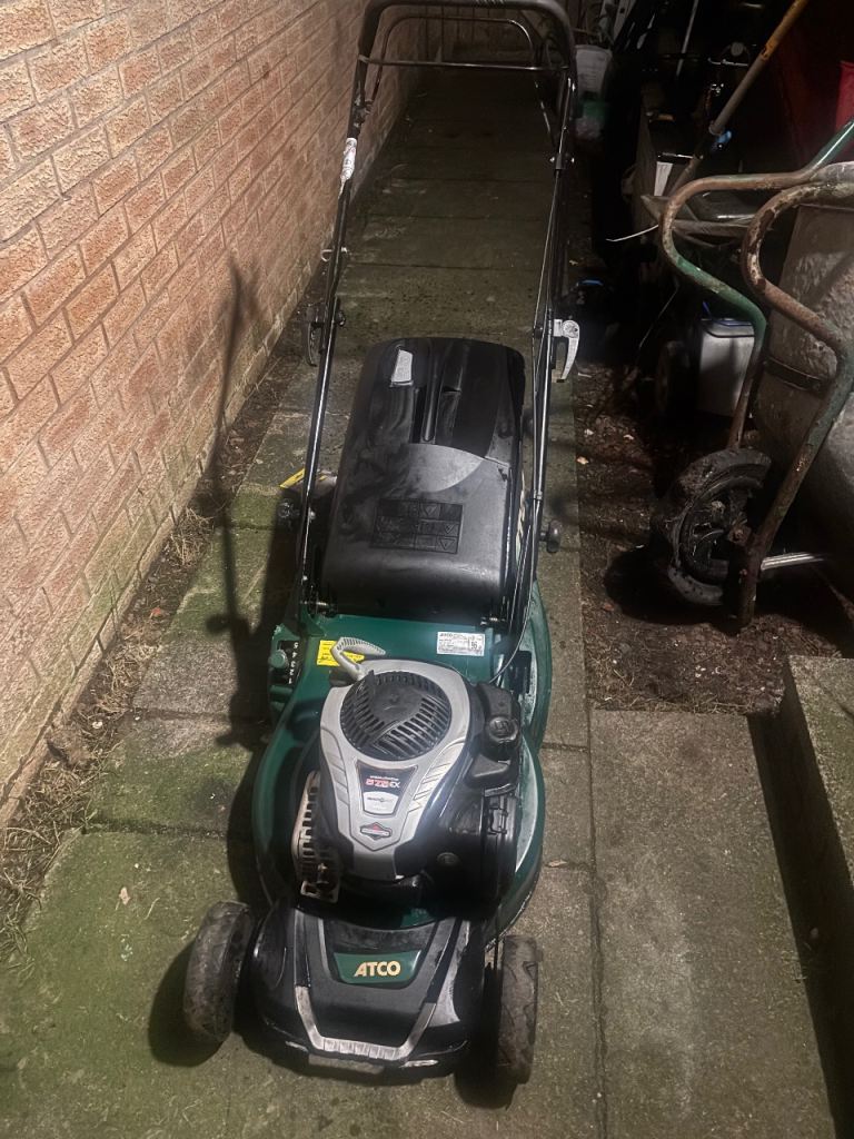 Atco lawnmower roller starts runs fine roller works hevy lawnmower give nice line on grass has some scraps on side but selling on eBay for 430 also has the hose deck adapter on lawnmower 180 Ono