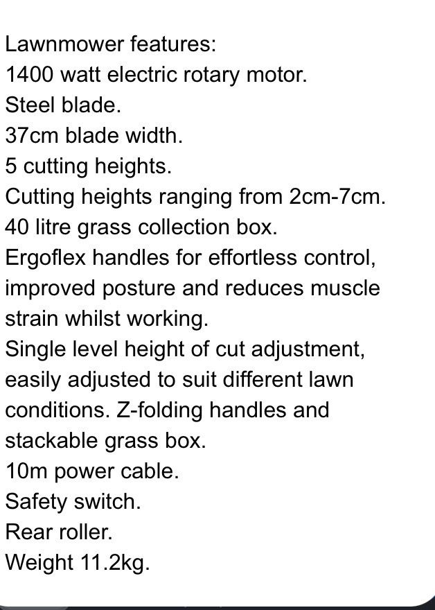 Bought last year and Used a handful of times . Moved to a petrol one as my garden very long.