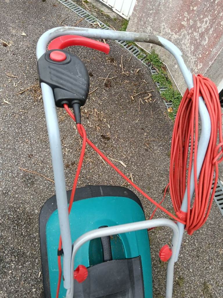 Bosh lawnmower. In good working order. Height adjustable handle is broken but can still be adjusted with a screwdriver hence the price.