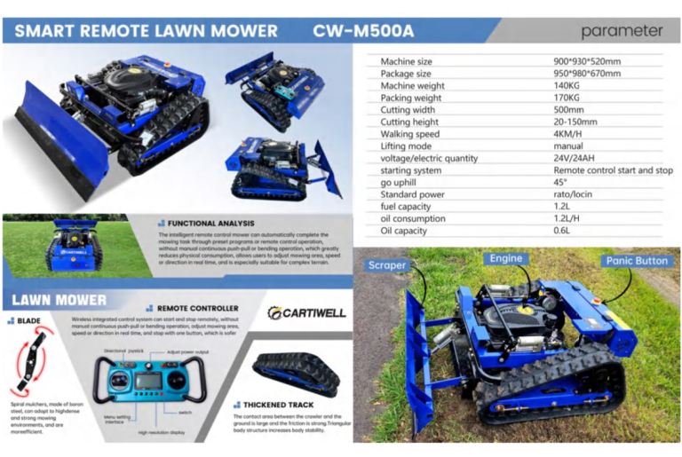 Cartiwell Skid Steer Snow Plough Remote Tracked Mower
