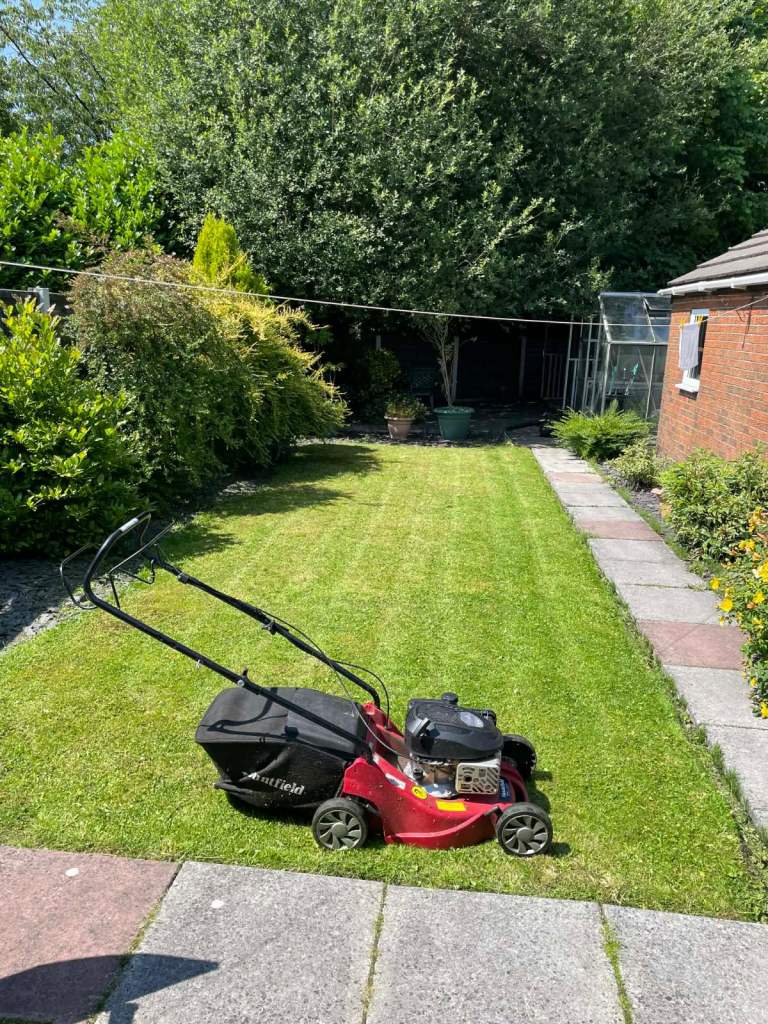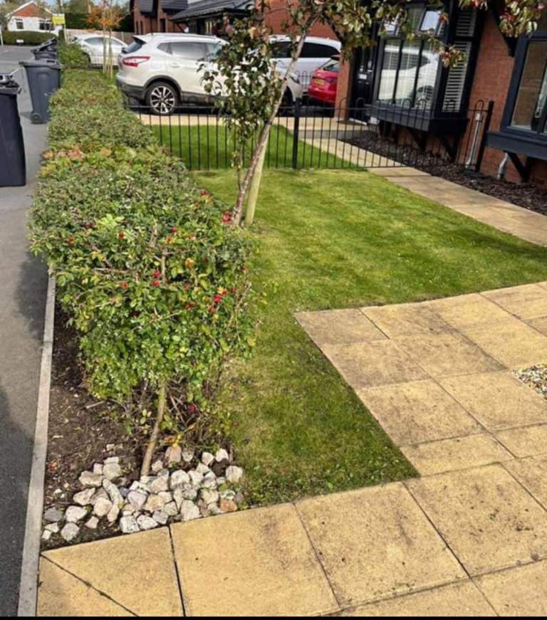Grass cutting leaf blowing hedge trimming boardes tidied overgrown garden clearance garden waste fence painting plants removed/planting turf laying dog waste removed power washing
