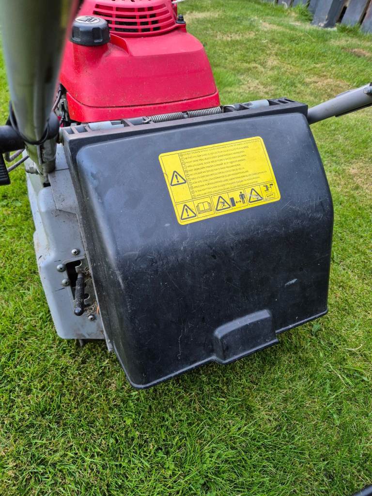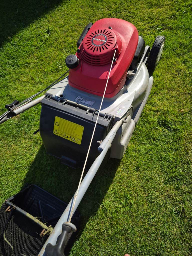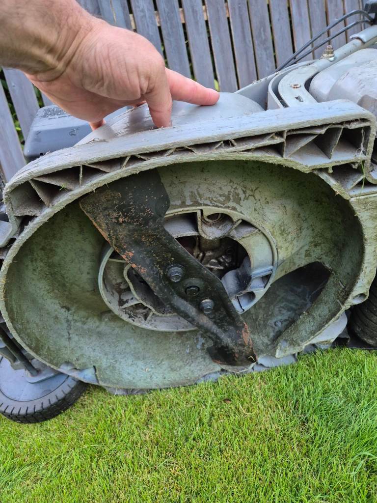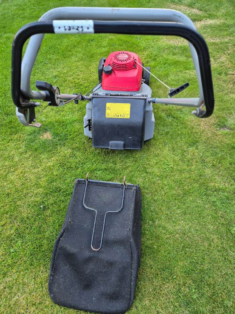 Starts, runs and cuts fine. Only issue is someone stole the grass bag, so the one pictured doesn't fit very well for collection, hence lower price and some of the plastic broken underneath from stones (pic3).