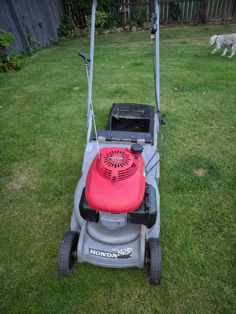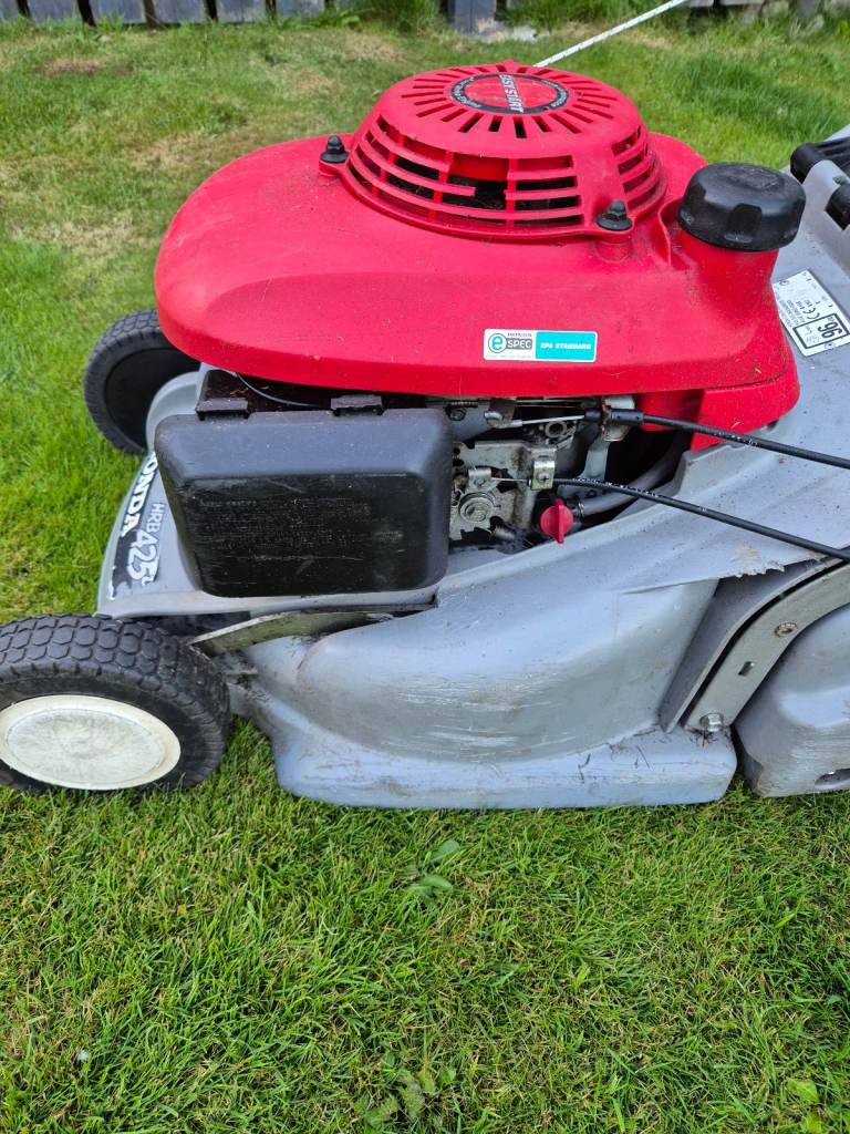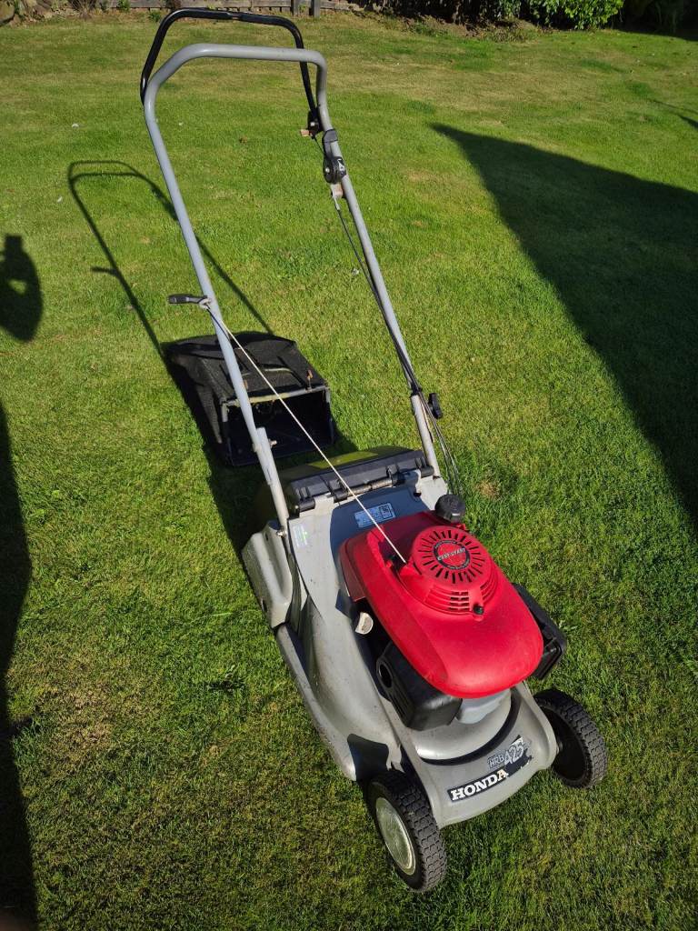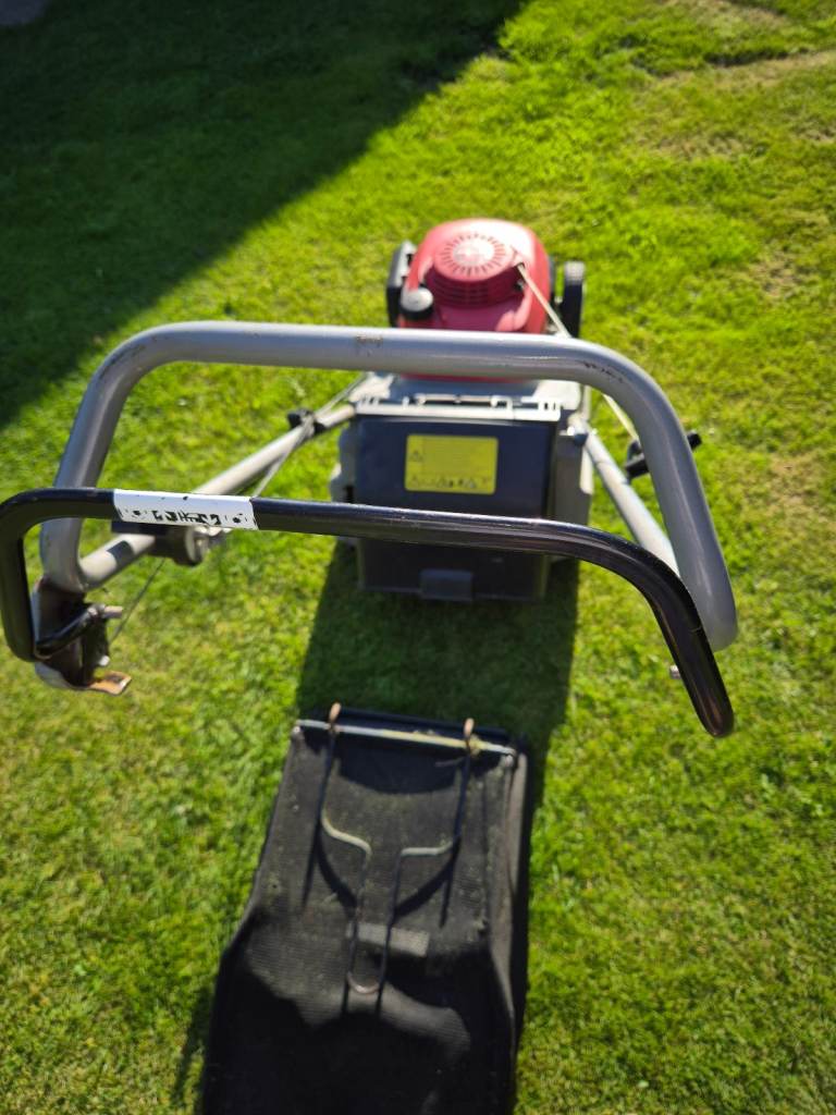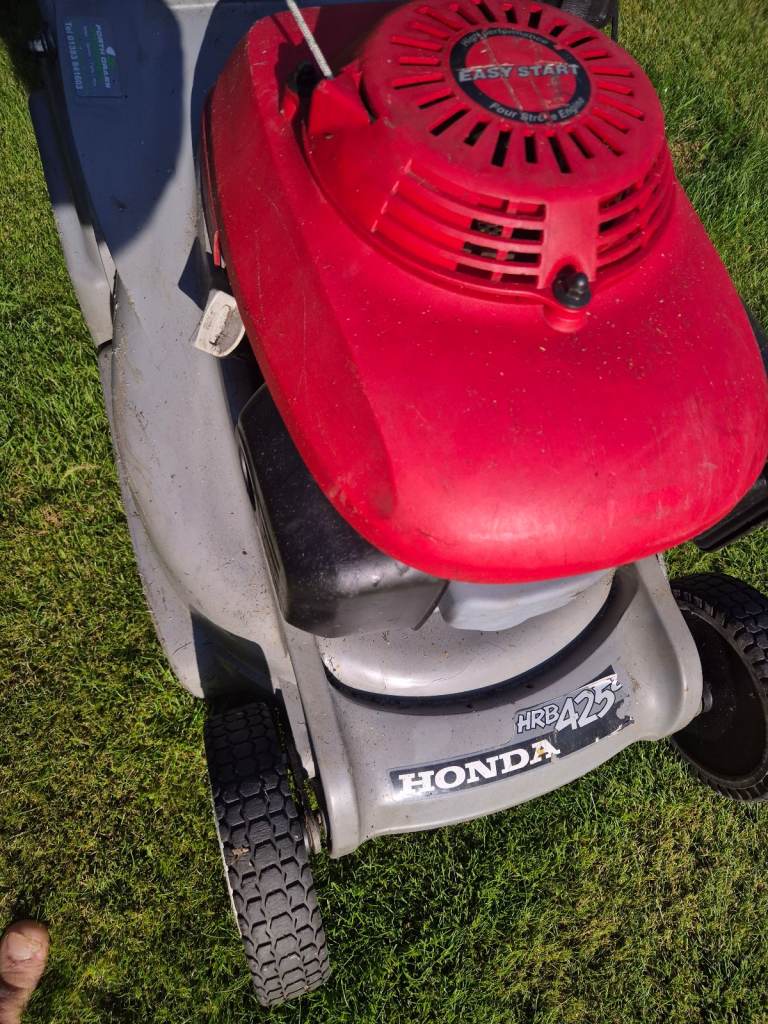 Starts, runs and cuts fine. Only issue is someone stole the grass bag, so the one pictured doesn't fit very well for collection, hence lower price and some of the plastic broken underneath from stones (pic3).