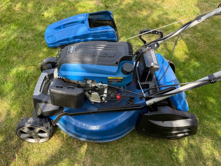 Electric start or pull cord start, rear roller for lawn stripes, 70 litre grass collector box, hose connector for cleaning, cutting height 25 - 75 mm, cutting width 530 mm.