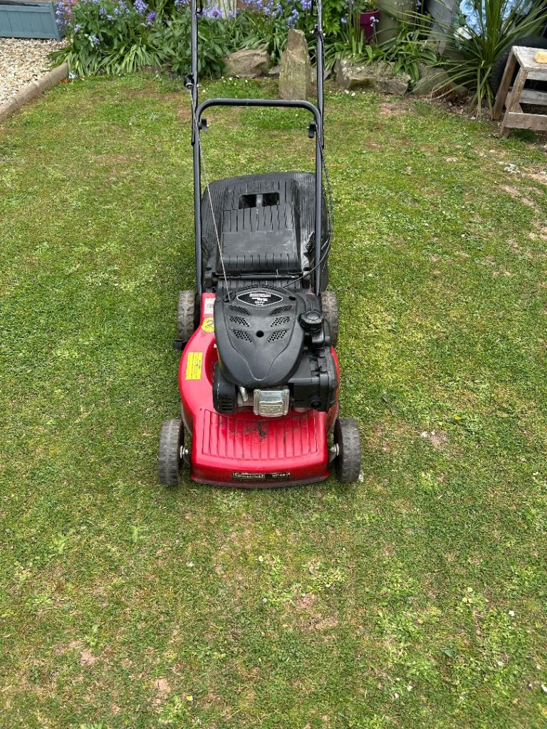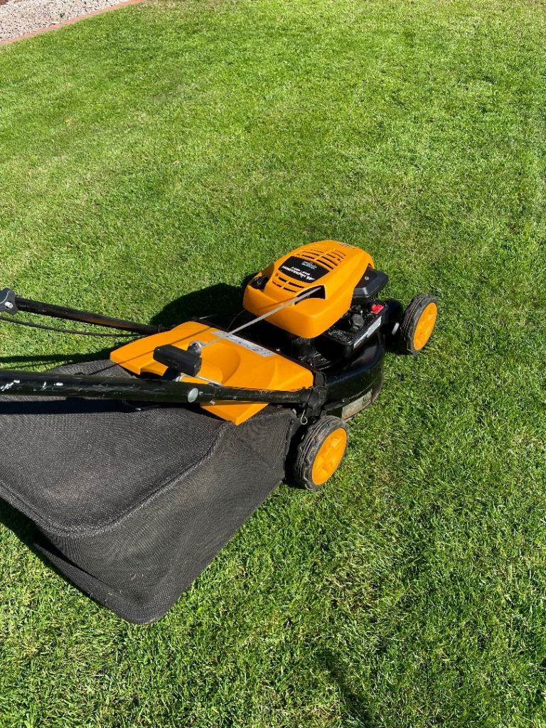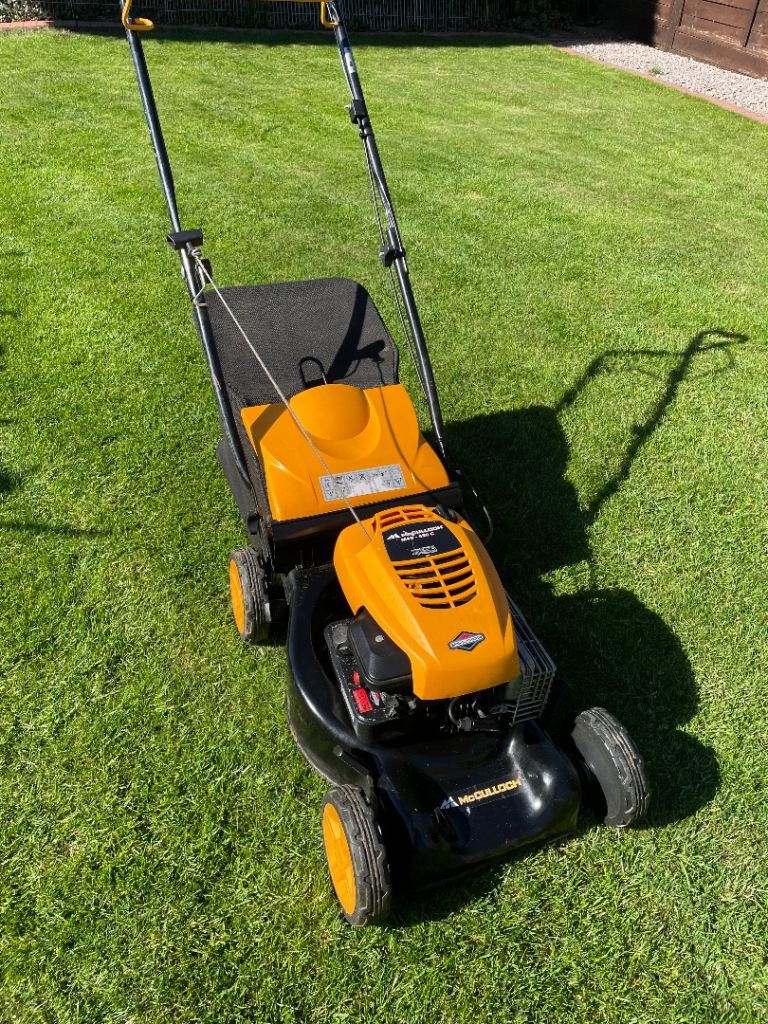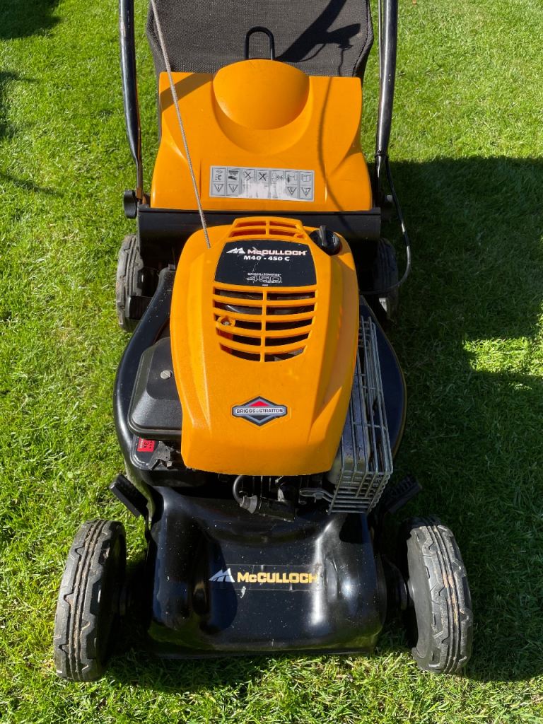McCulloch M40-450c petrol push lawnmower fitted with the Briggs and Stratton 450 series 4 stroke petrol engine. Comes with grass box.