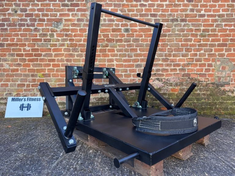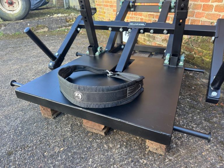 Fully functional belt squat machine from Bells Of Steel. Plate load with 2 inch holed olympic plates only. Height adjustable starting position to suit user. Belt included.
