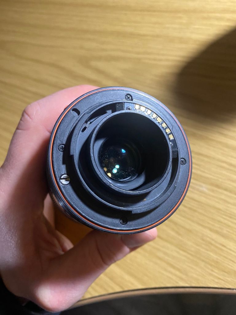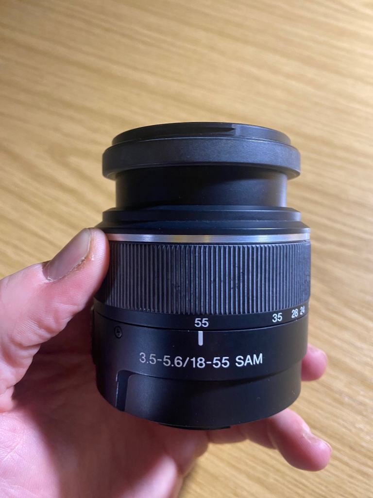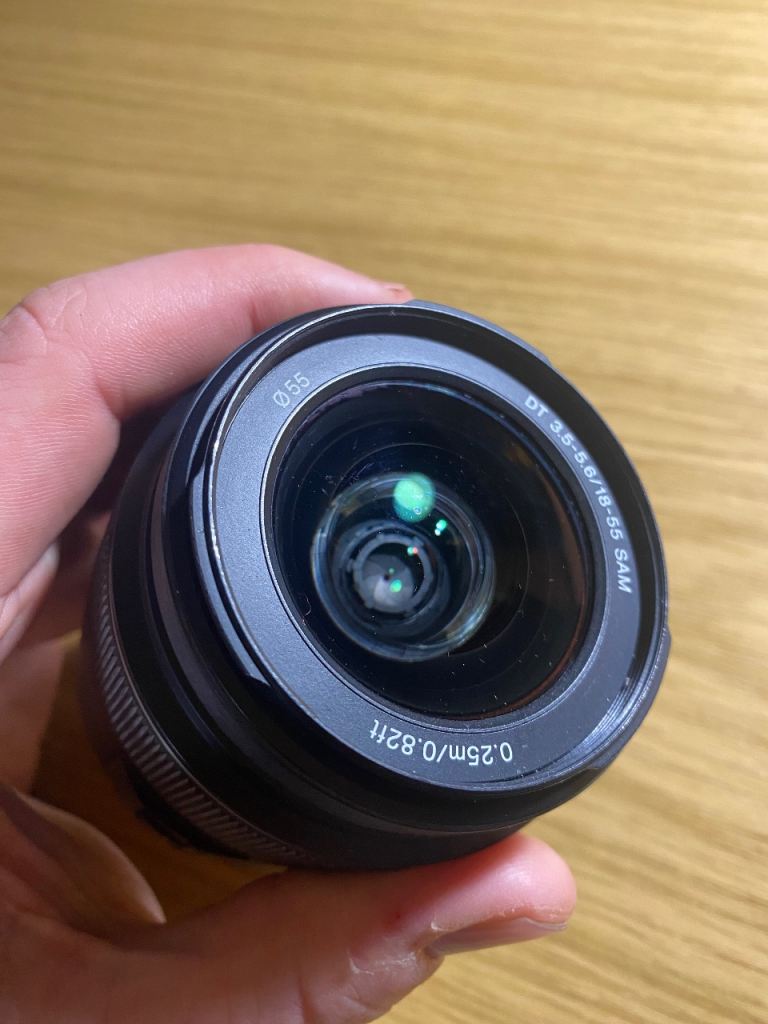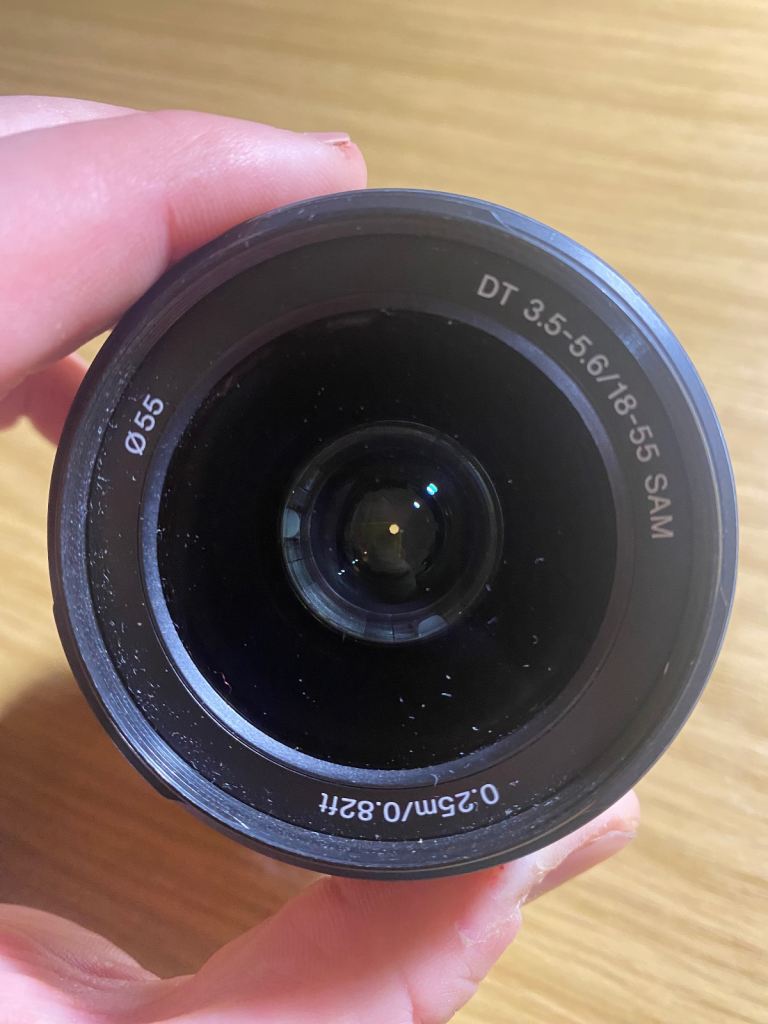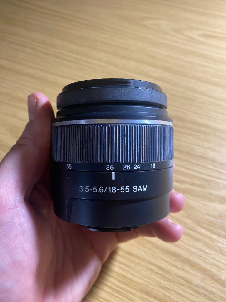 The DT 18-55 is Sony A mount compatible, 18-55mm focal length and 3.5-5.6 lens aperture. 76-29 degree field of view and 25cm min focus range. 55mm filter size.
