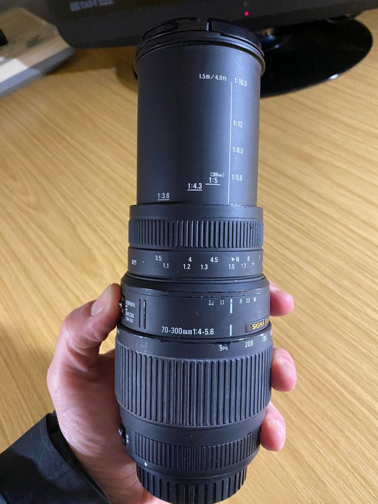 Nikon Sigma DG 70-300mm Focal Length 1:4-5.6 Lens Aperture. Includes lens caps and lens is overall very good preowned condition (please see pictures). Great little unit and affordable.