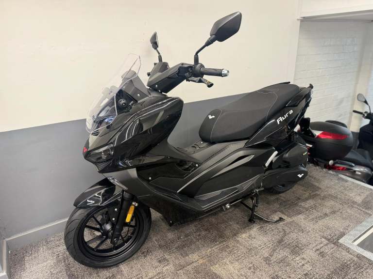 The Lexmoto Aura brings together modern styling with rider focused features to create a scooter that`s as practical as it is refined. Powered by a responsive 125cc engine, the Aura offers smooth automatic performance ideal for both new and experienced riders. Comfort comes as standard, with a relaxed riding position and an adjustable windscreen for improved wind protection on longer journeys. Packed with convenience, the Aura includes generous under-seat storage, a built-in USB charger for on-the-go connectivity, and keyless ignition for easy access. A bright TFT screen delivers clear, at-a-glance information in all lighting conditions, while full LED lighting enhances visibility and road presence. Whether you`re commuting, running errands, or exploring further afield, the Lexmoto Aura is built to make every ride feel effortless.