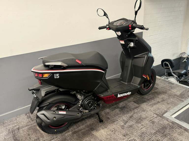 Discover the brand new Lexmoto L5 50cc, a learner-legal moped scooter perfect for 16-year-olds, available to order in two stylish colors.
